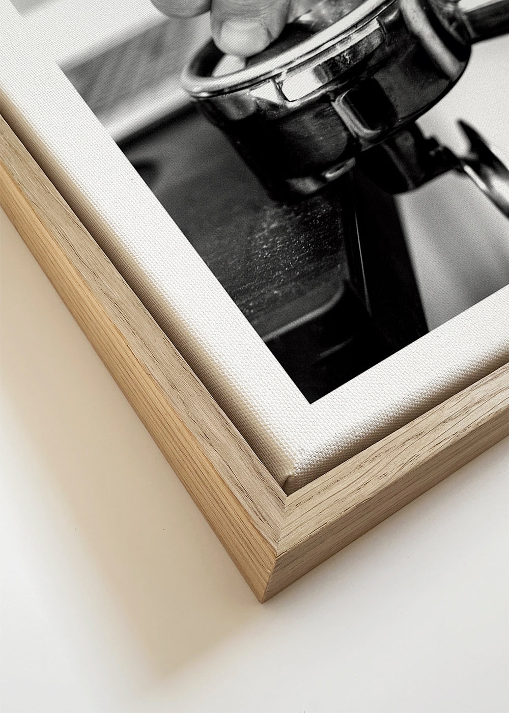 If you select the passepartout option, we will add the white matt board to the frame, and we will reduce the design of the work. For example, if you select a print size 20x28 in, with an oak colored frame and passepartout, we will reduce the design of the print to the previous size (16x20 in). In this way, it will adapt perfectly to the inside window of the passepartout.
