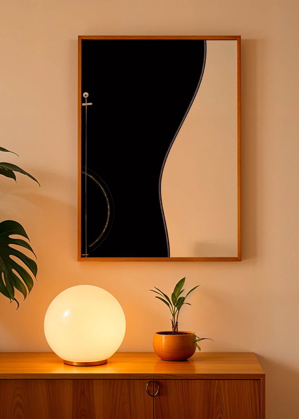 All our frames are manufactured in Spain. The white, black and oak frames are made of Ayous wood, and the oak ones are veneered in oak, while the metallic ones are made of aluminum.