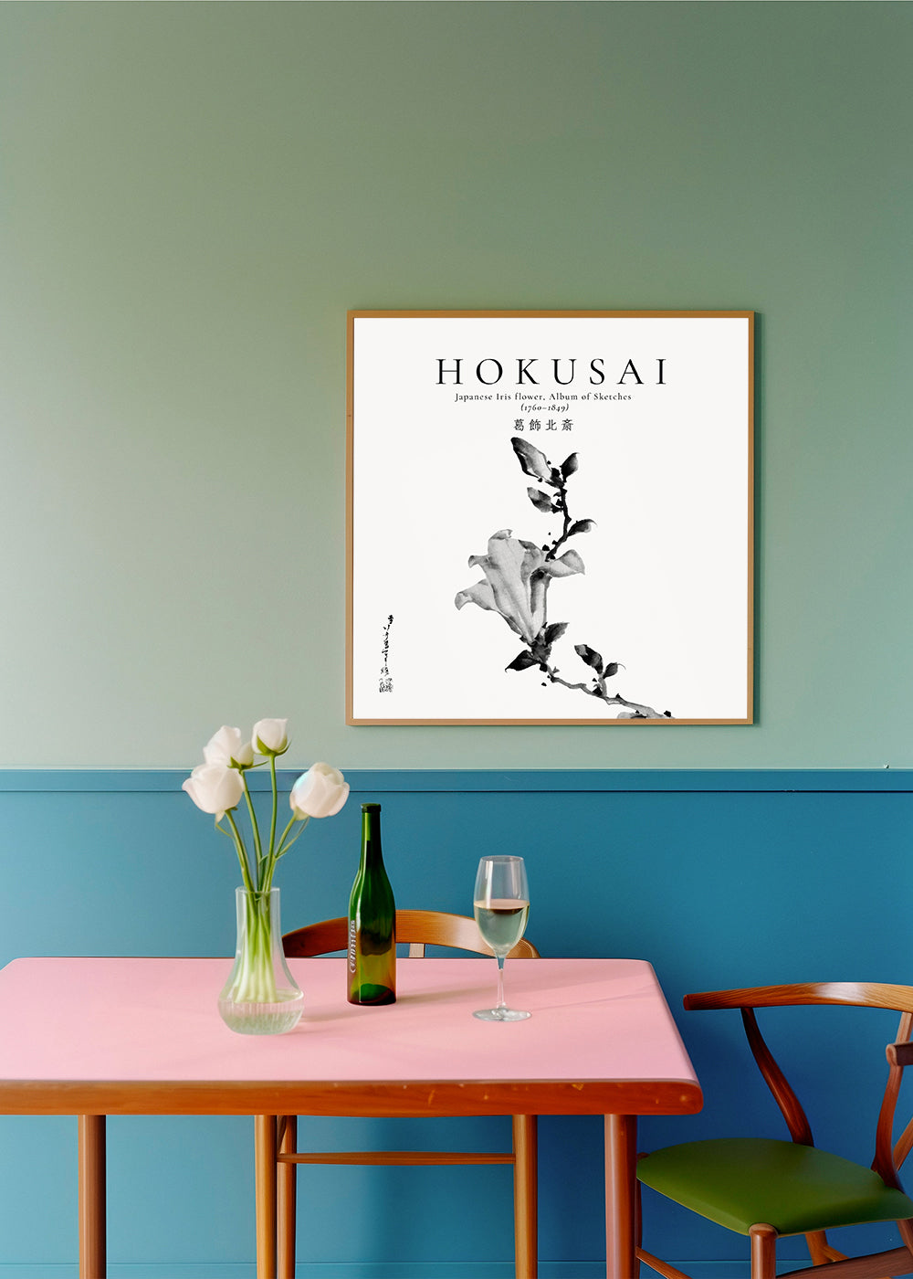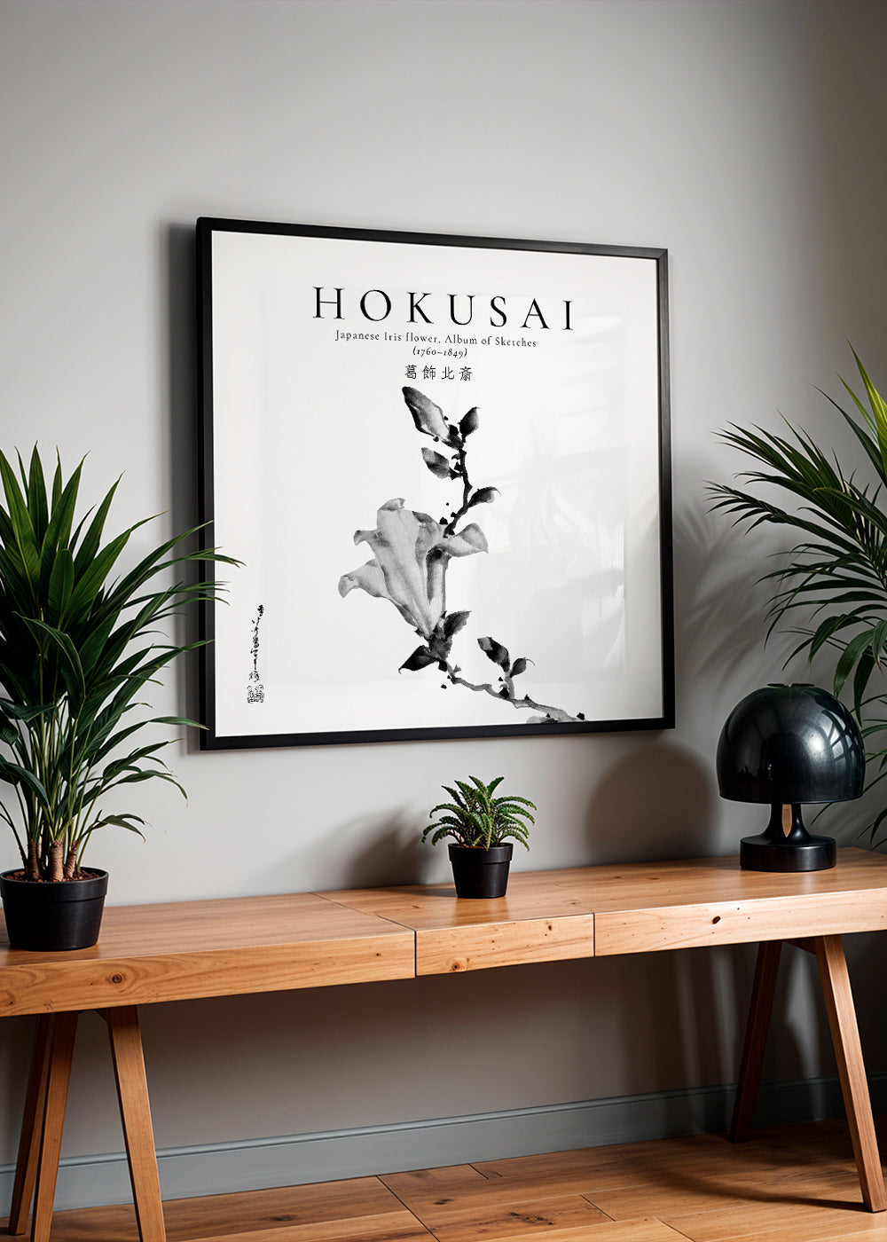 Black and white wall art Japanese Iris flower by Katsushika Hokusai - Square