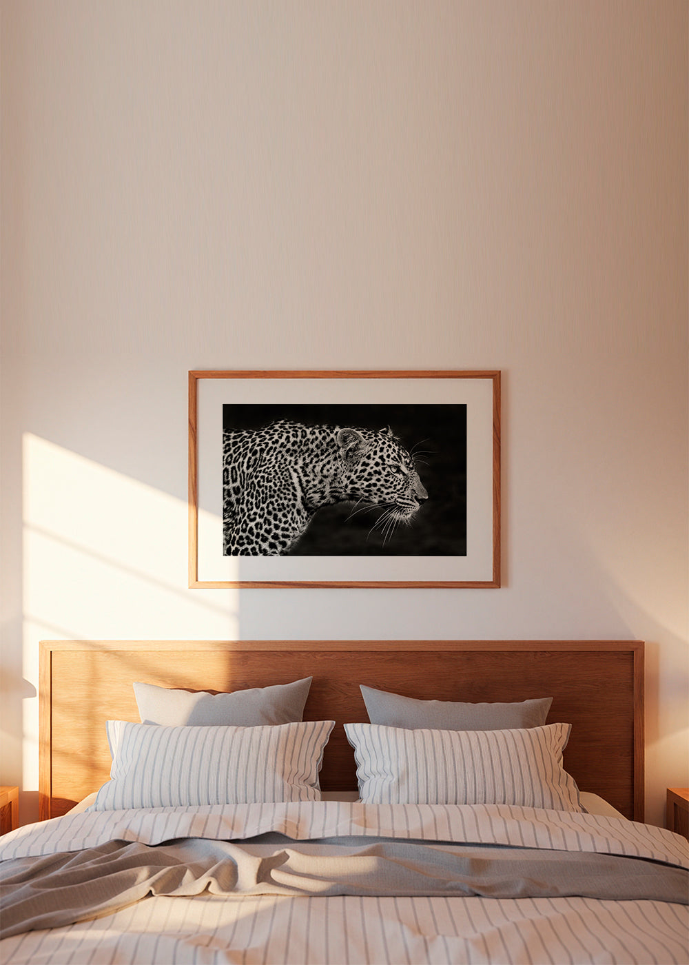 Beautiful poster inspired by the collection of animal wall art, in black and white shades, and facing horizontally. Decorating with animal prints is a great way to make your walls more energetic. Play around with different combinations of our pieces to get the look you want. The white strip around the piece enhances its expressiveness.