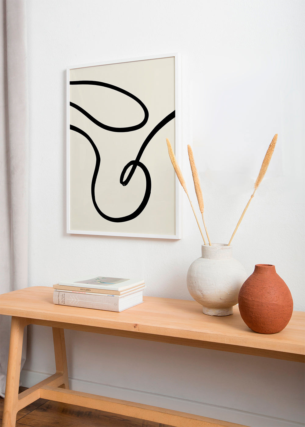 A poster from our line art prints series, with black, and in vertical position. This abstract artwork is perfect for almost any space in the home. Pure art and design.