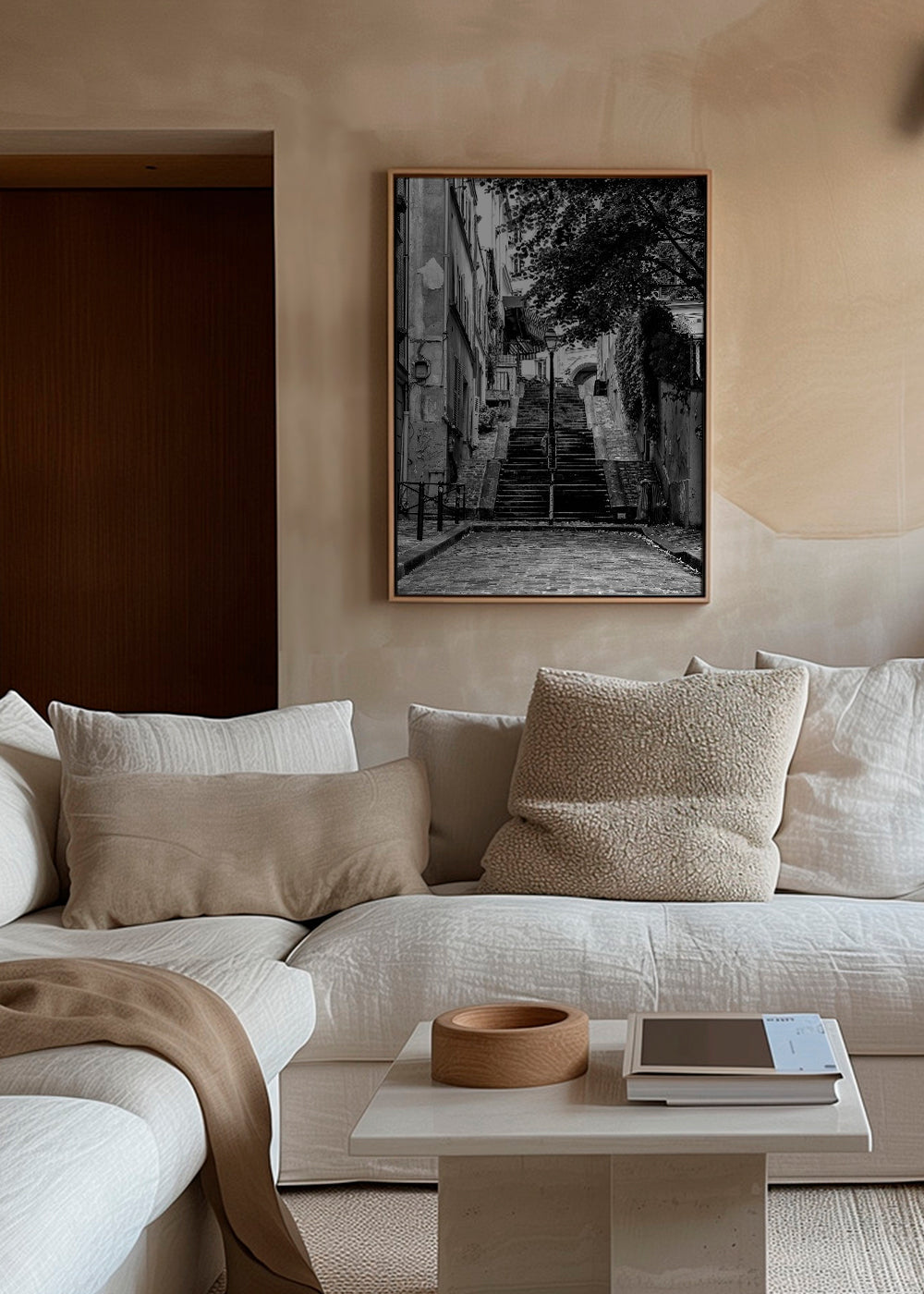 Each canvas is hand-stretched over a wooden frame. The depth is 3 cm for unframed canvases and 4 cm for framed canvases.