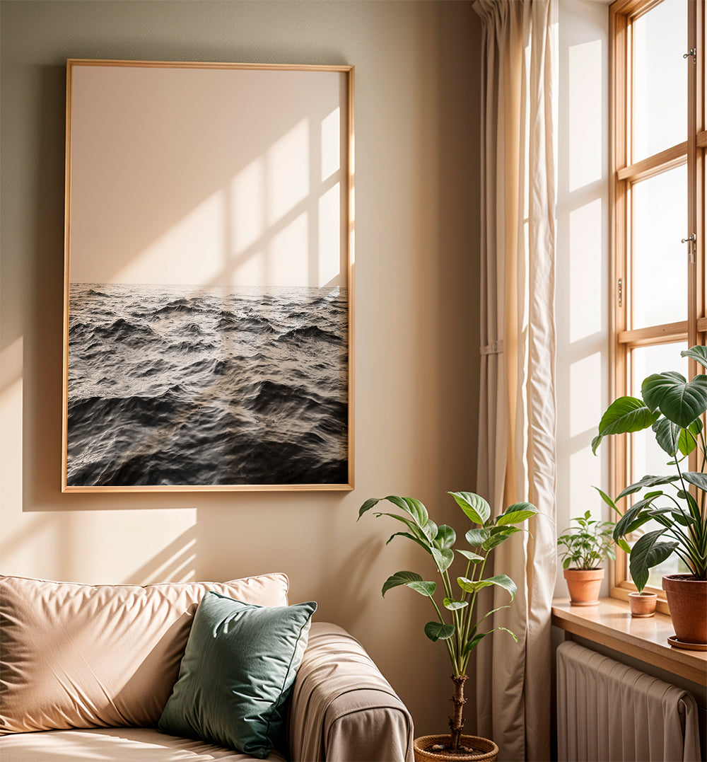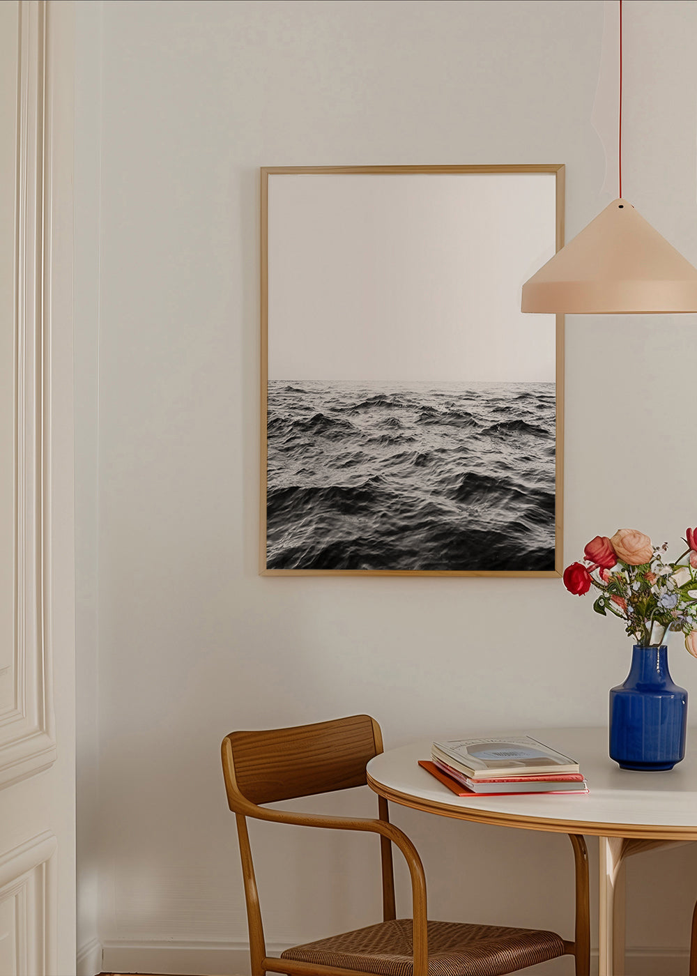 A poster from the ocean wall art and prints series, created by Kathrin Pienaar, in black and white shades, and with vertical layout. Landscape prints are spectacular; pair them with texts and phrases to create cool wall compositions. Create the perfect environment.