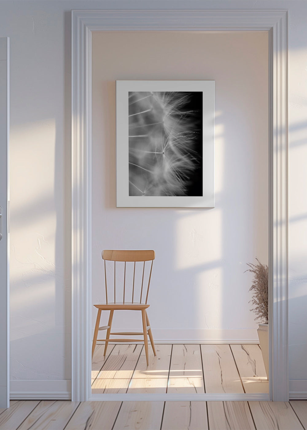 A print from the botanical prints and wall art series, with tones of black and white, and vertical layout. This design will give your home a casual look and pairs very well with other prints with flowers and plants and with texts and phrases. The print your wall has been looking for. The white strip around the piece enhances its expressiveness.