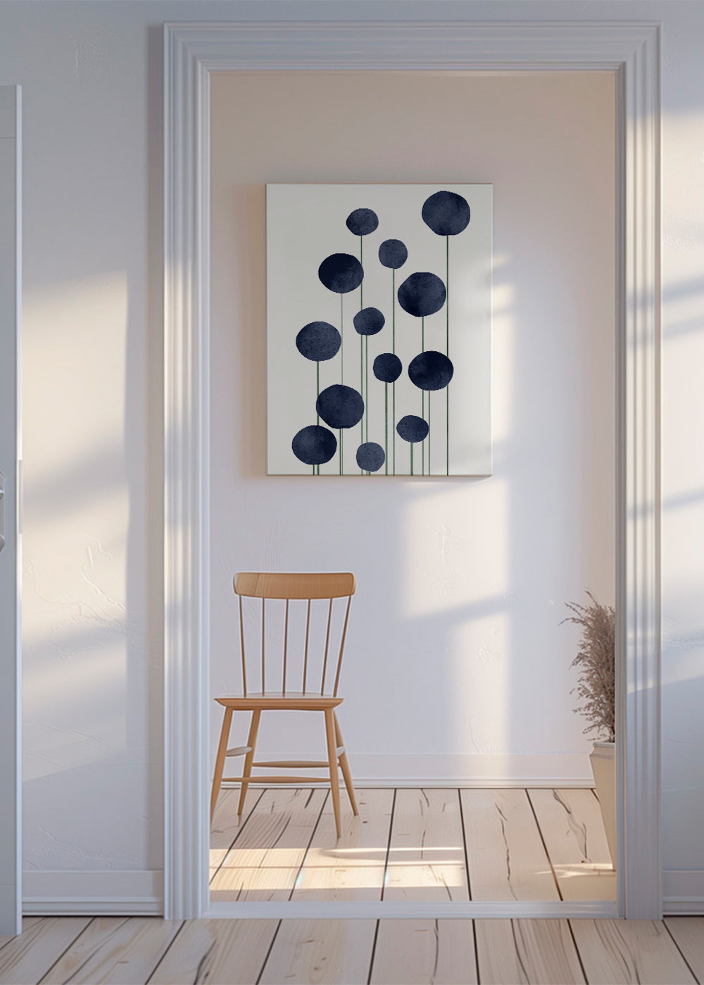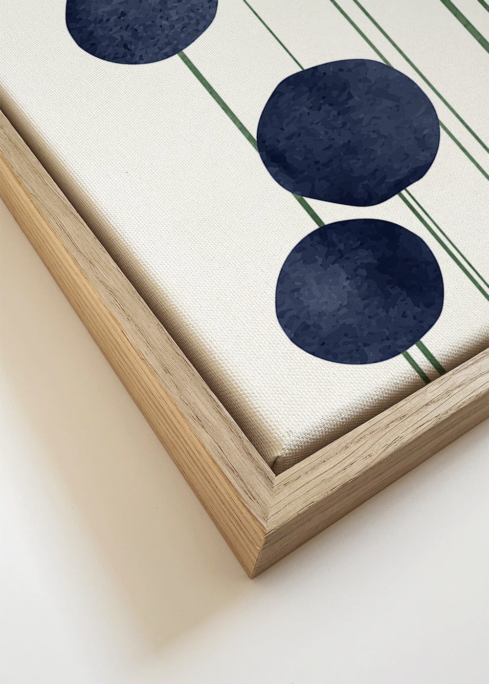 Each canvas is hand-stretched over a wooden frame. The depth is 3 cm for unframed canvases and 4 cm for framed canvases.