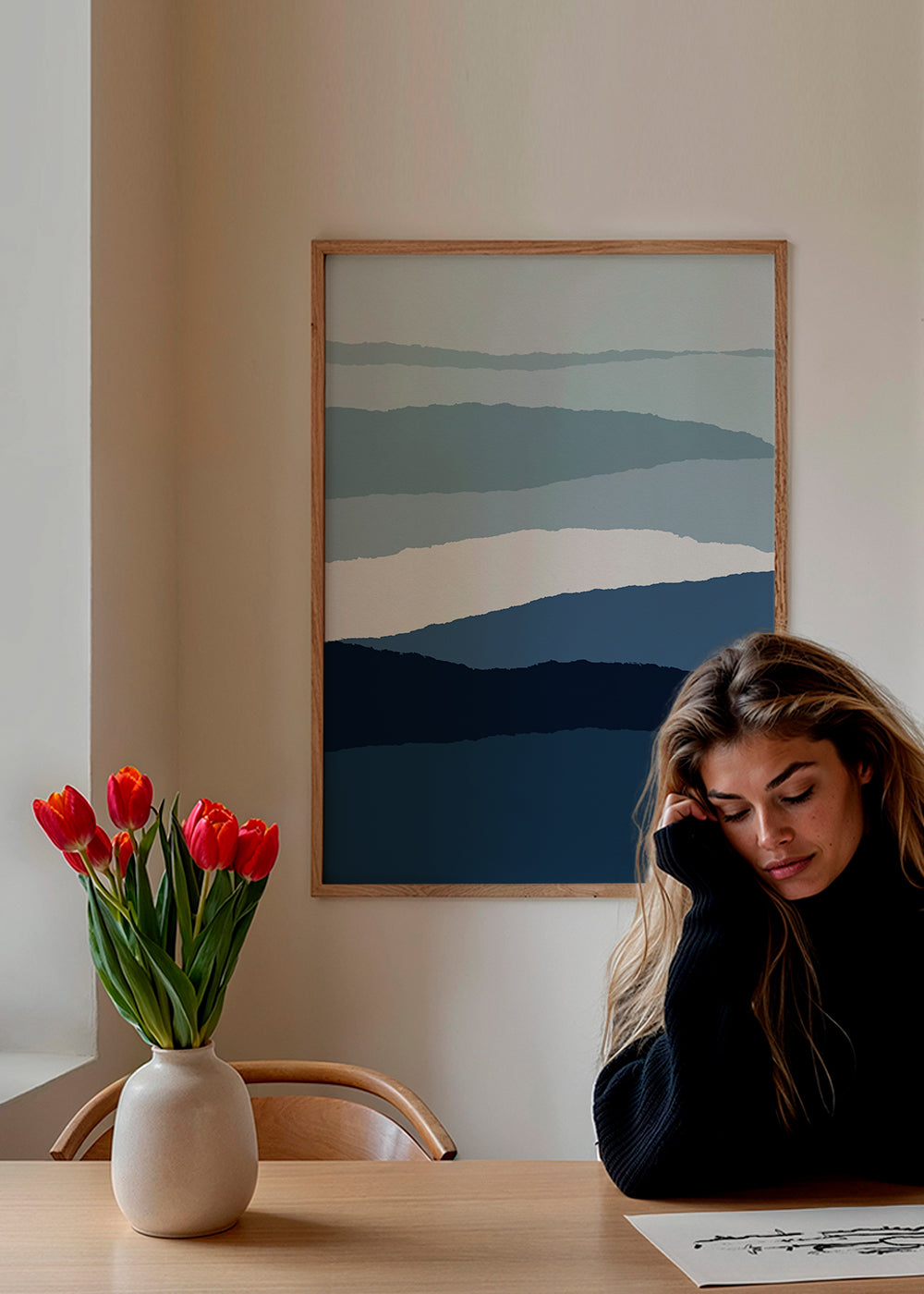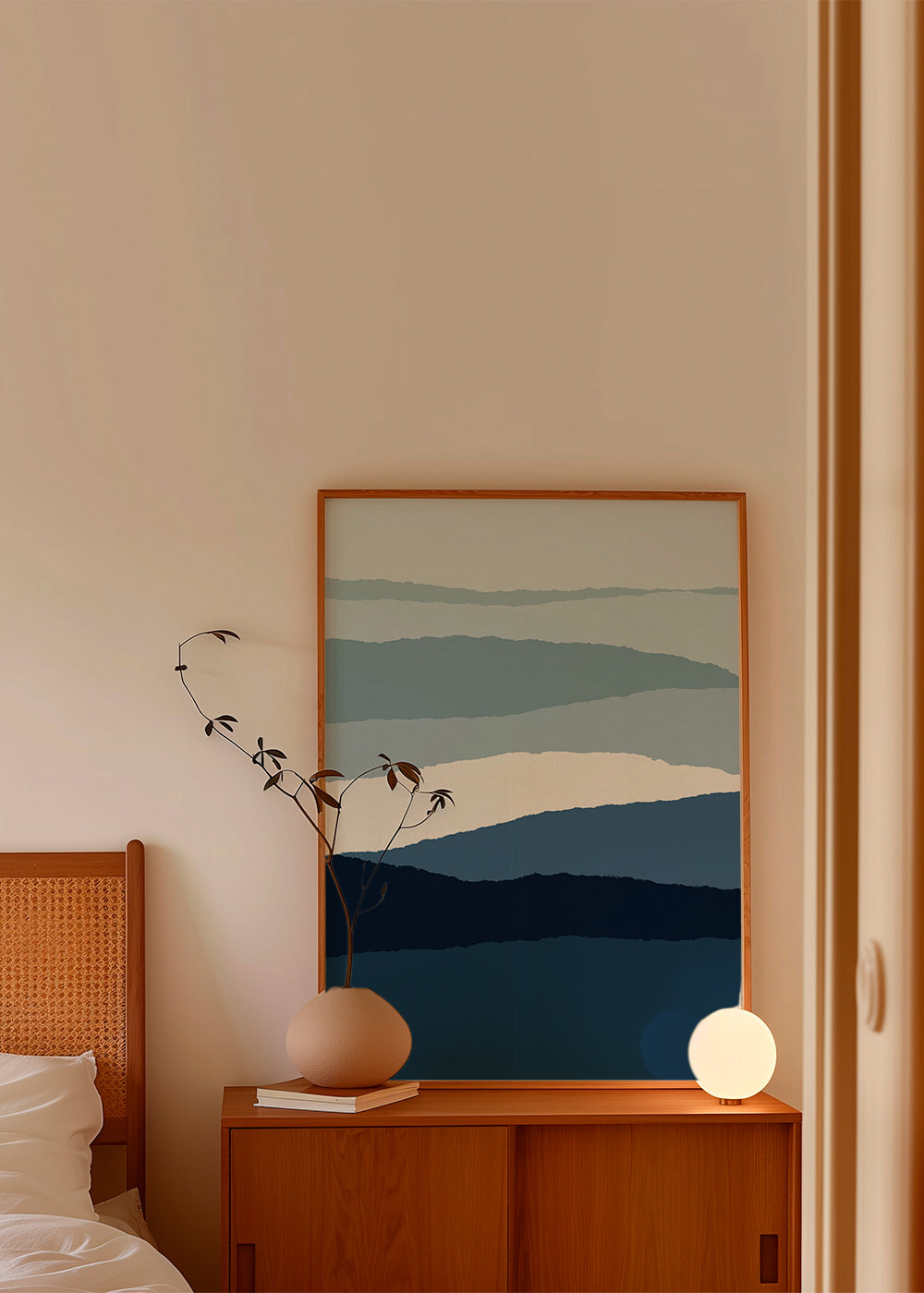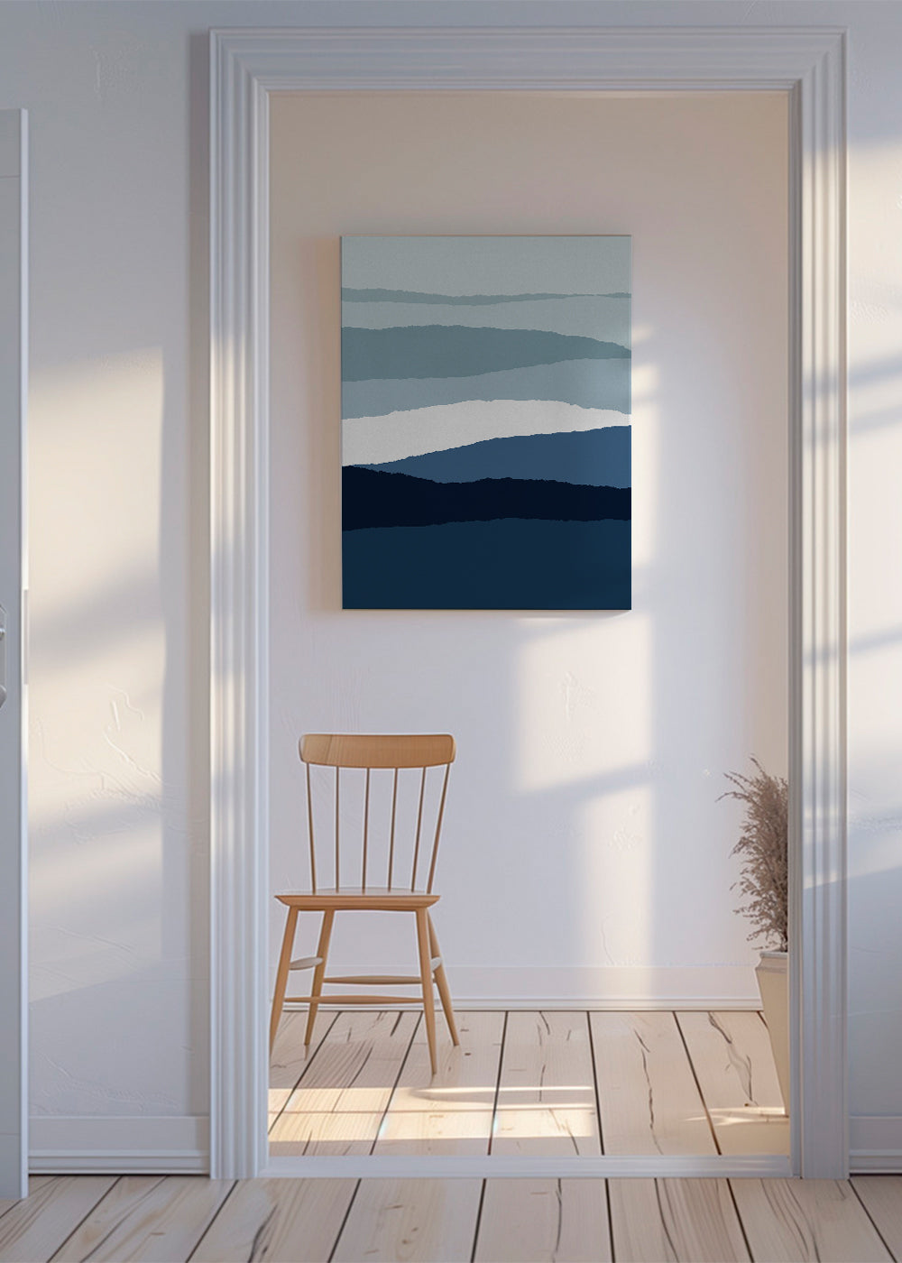 This print from our mountains wall art category, an original by Orara Studio, with blue pigments, and in vertical position. Landscape decoration brings a breath of fresh air to any room. There are no ugly or beautiful walls, just empty or full ones.