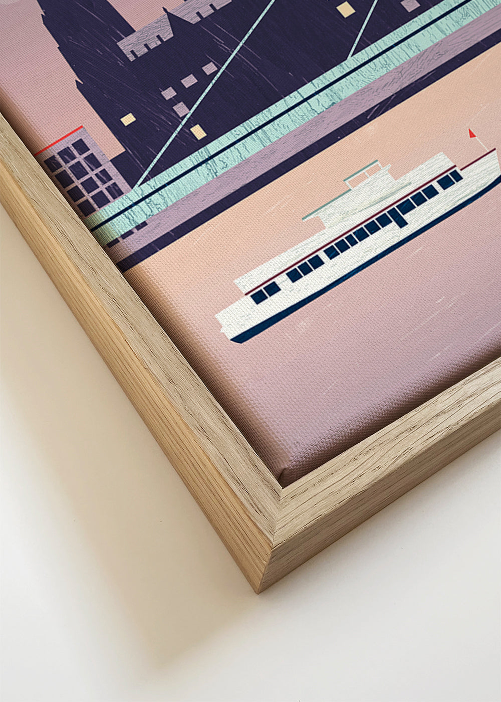 Each canvas is hand-stretched over a wooden frame. The depth is 3 cm for unframed canvases and 4 cm for framed canvases.