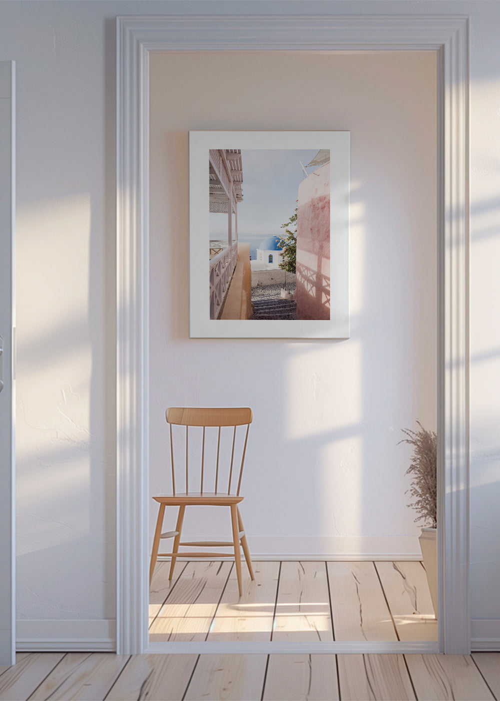 If you select the passepartout option, we will add the white matt board to the frame, and we will reduce the design of the work. For example, if you select a print size 20x28 in, with an oak colored frame and passepartout, we will reduce the design of the print to the previous size (16x20 in). In this way, it will adapt perfectly to the inside window of the passepartout.