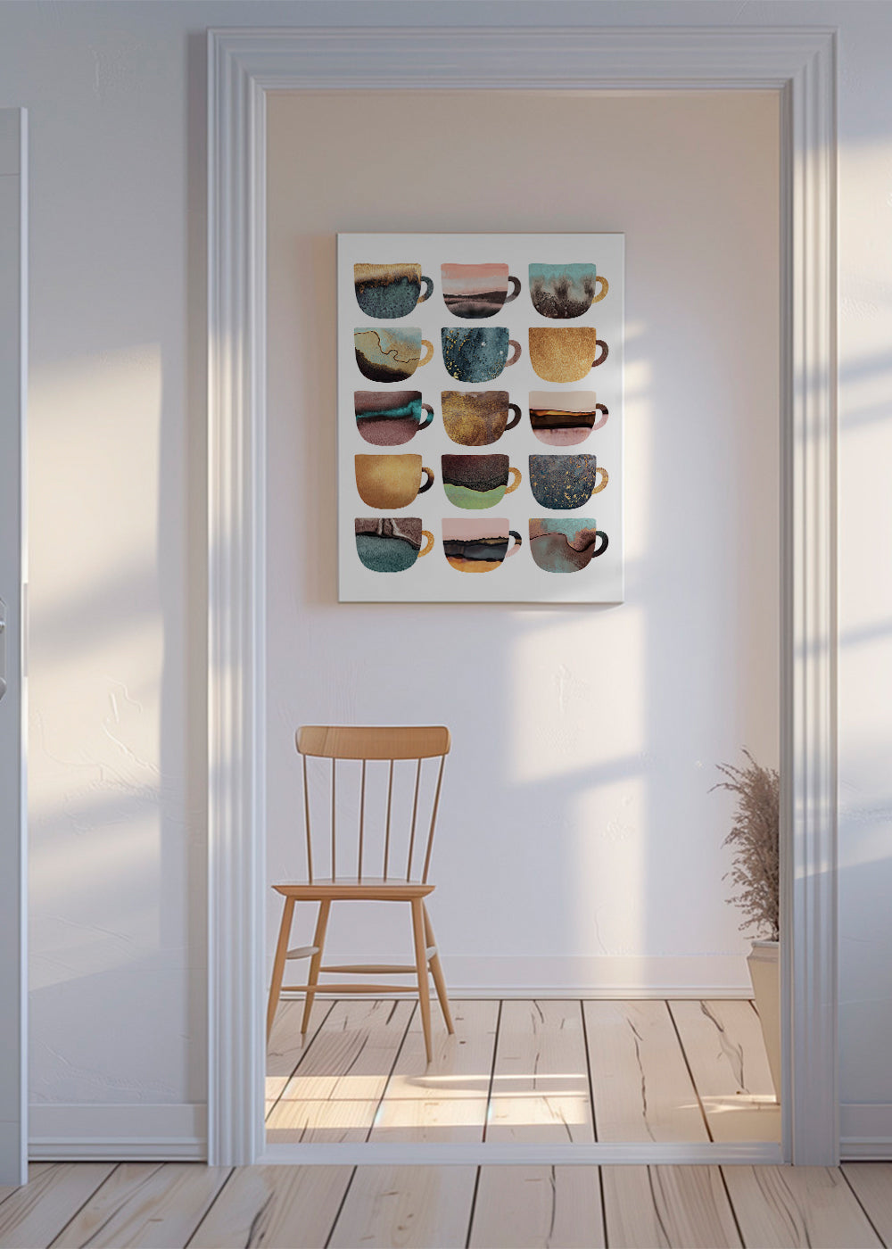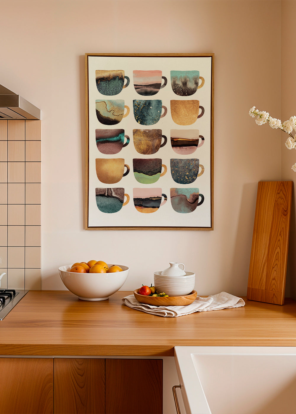 A piece from our pattern wall art series, made by Elisabeth Fredriksson, in multicolor shades, and to hang in vertical position. This piece is perfect for decorating the kitchen in your home. Fill your walls with prints.