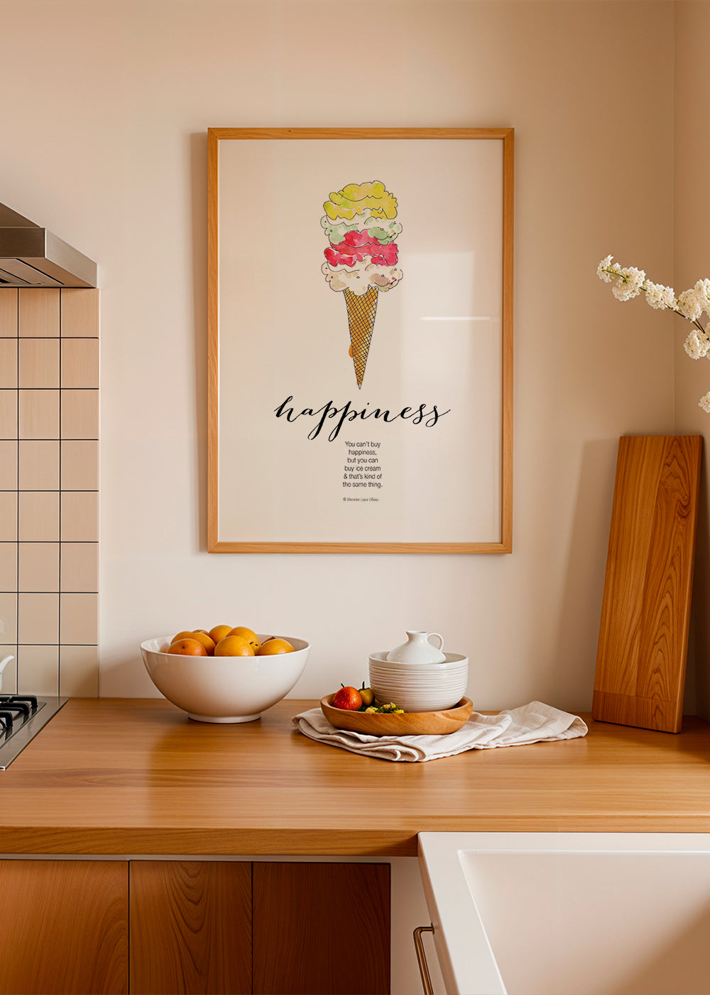 This design from the food posters series, created by Mercedes Lopez Charro, with touches of white, and vertical layout. With this print in your kitchen, cooking will no longer be a problem. You won't be able to wait to get cooking again, just so you can see it. Pair it with other kitchen prints. Dress up your walls at home