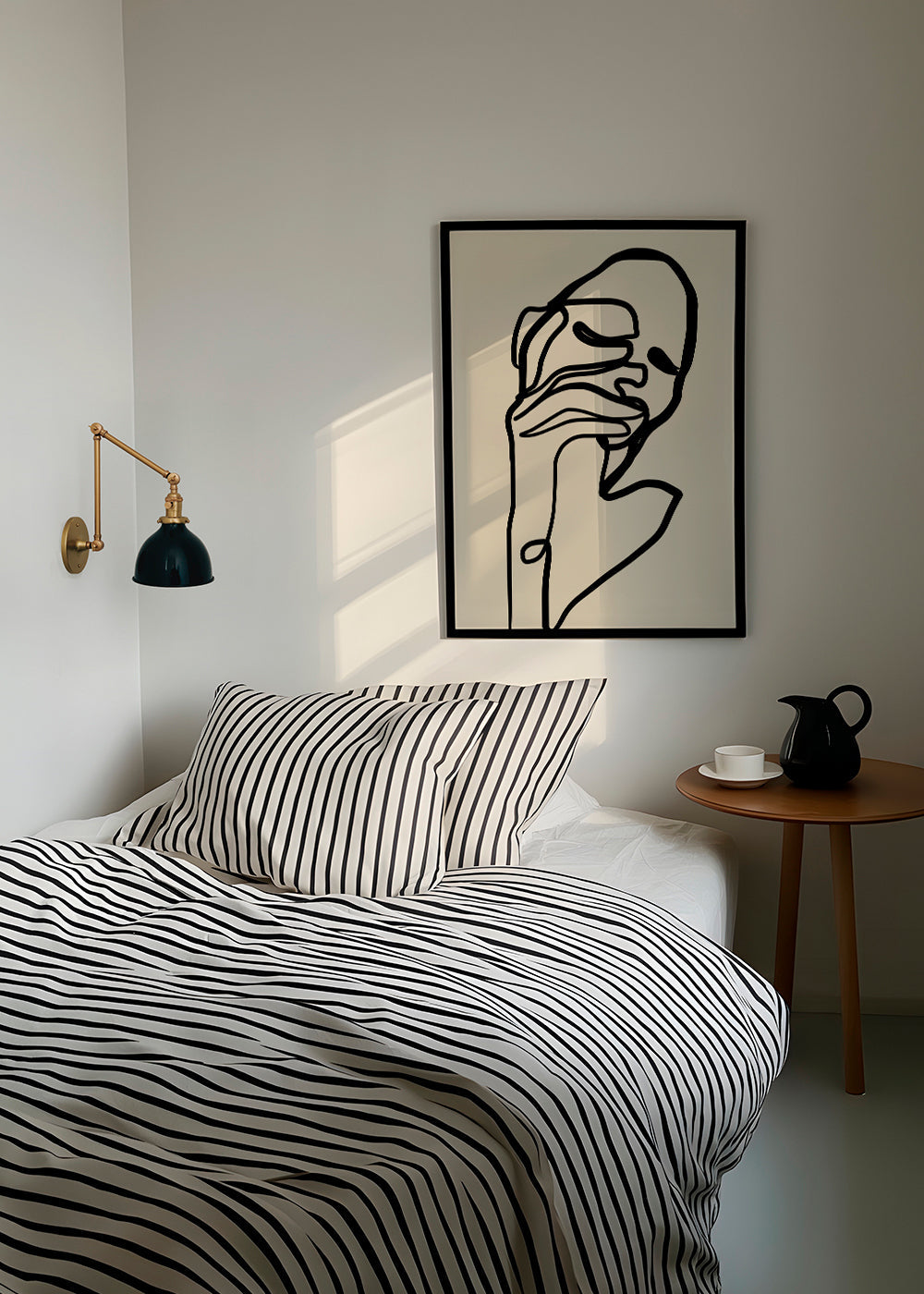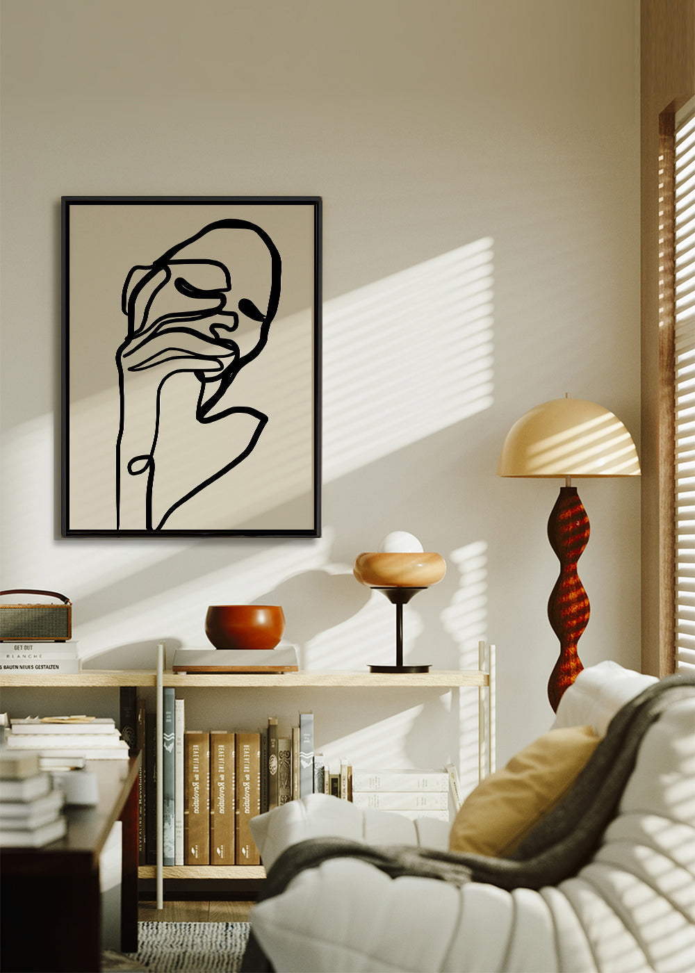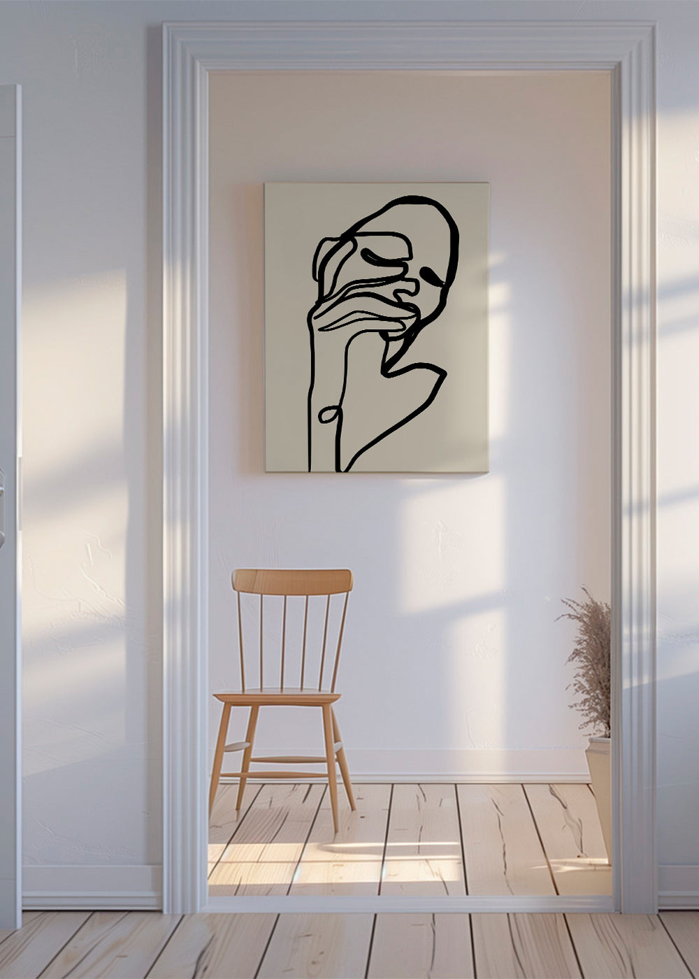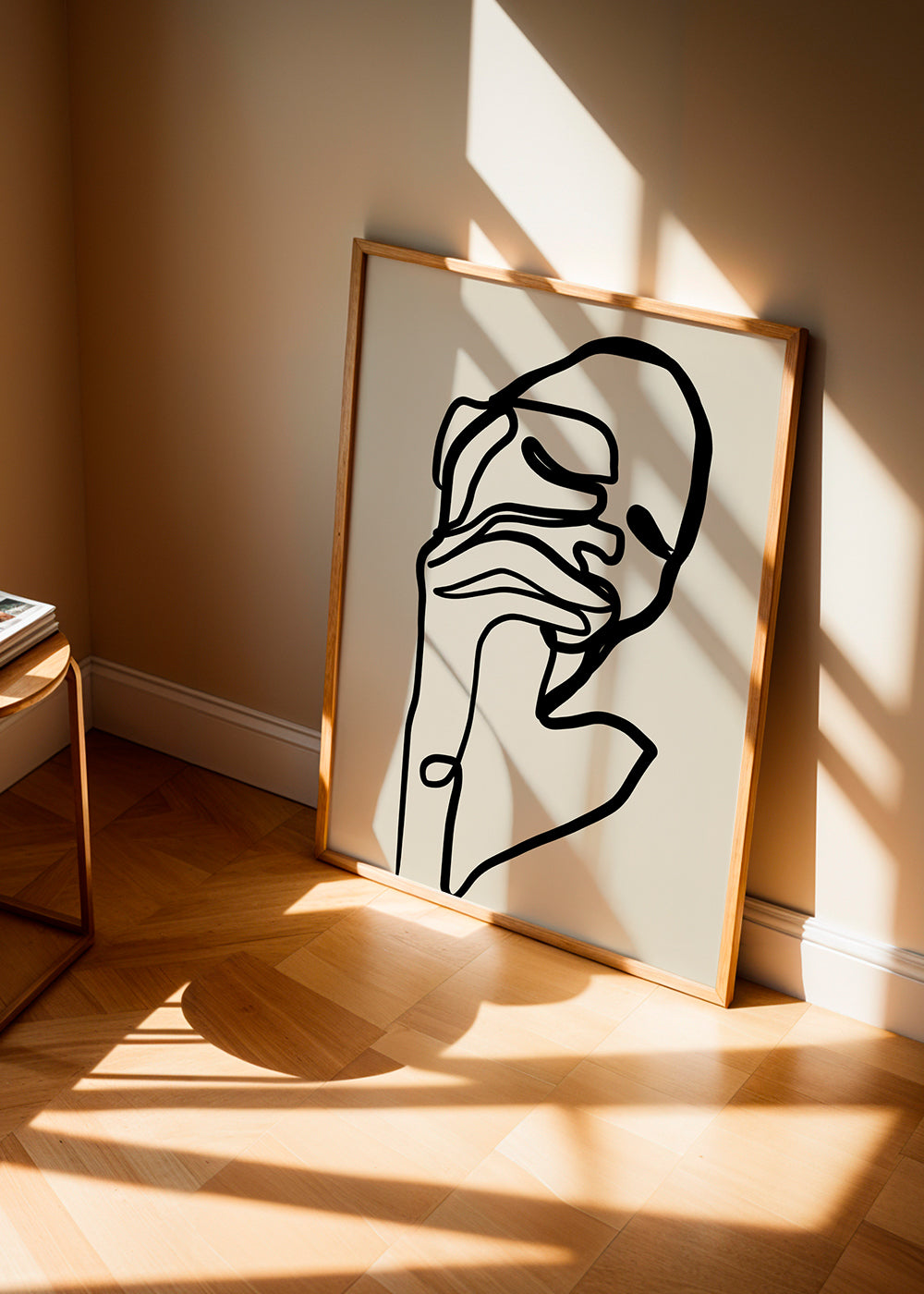 A print from our selection of portrait faces posters, by Sophia Novosel, with black tones, and vertical layout. The drawing is simple and clean, so you can pair it with other illustrations for an artistic composition. The final touch for your home decor.