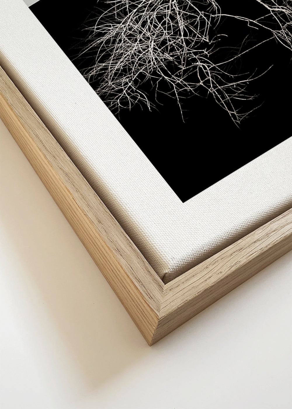 If you select the passepartout option, we will add the white matt board to the frame, and we will reduce the design of the work. For example, if you select a print size 20x28 in, with an oak colored frame and passepartout, we will reduce the design of the print to the previous size (16x20 in). In this way, it will adapt perfectly to the inside window of the passepartout.
