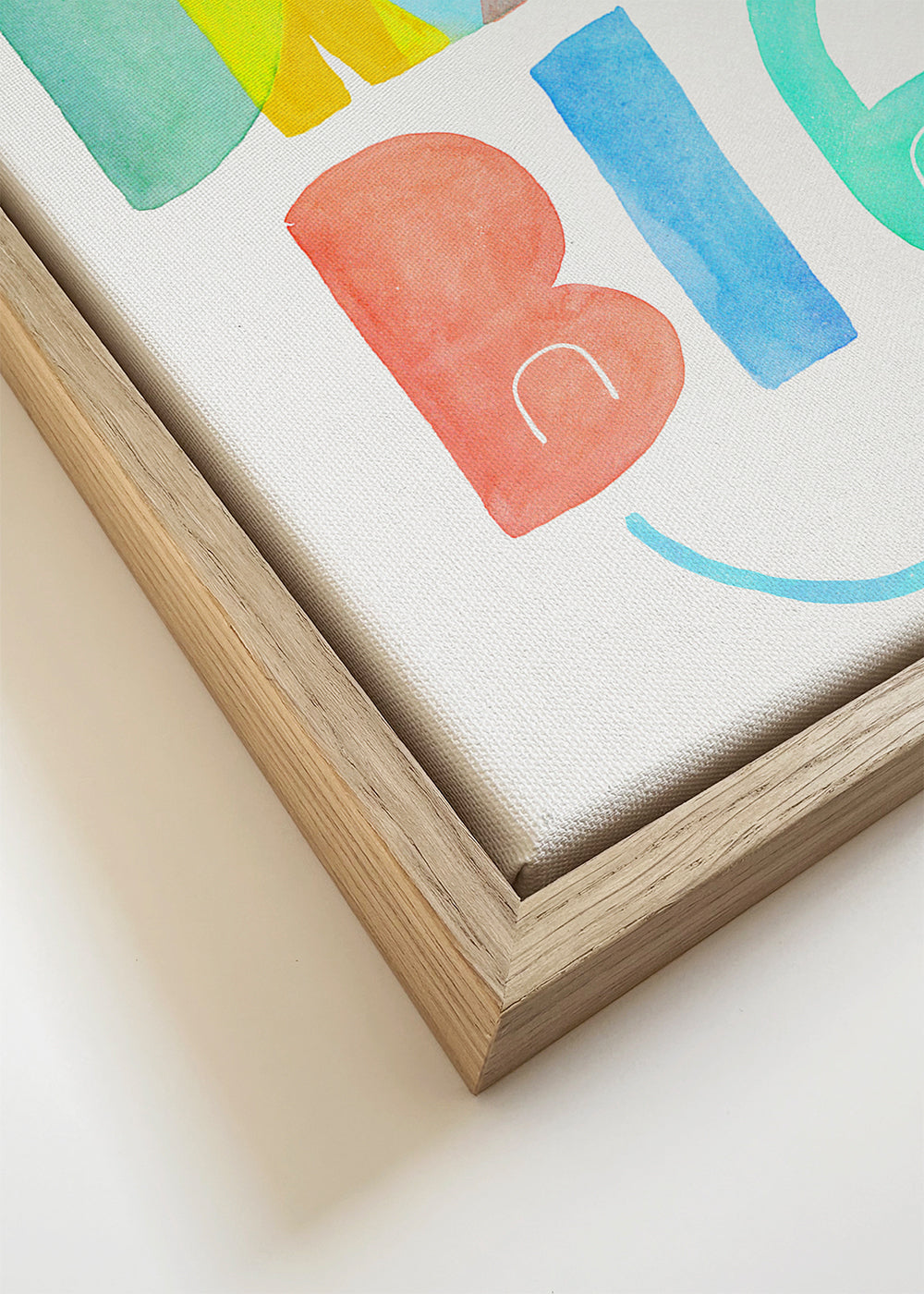 Each canvas is hand-stretched over a wooden frame. The depth is 3 cm for unframed canvases and 4 cm for framed canvases.