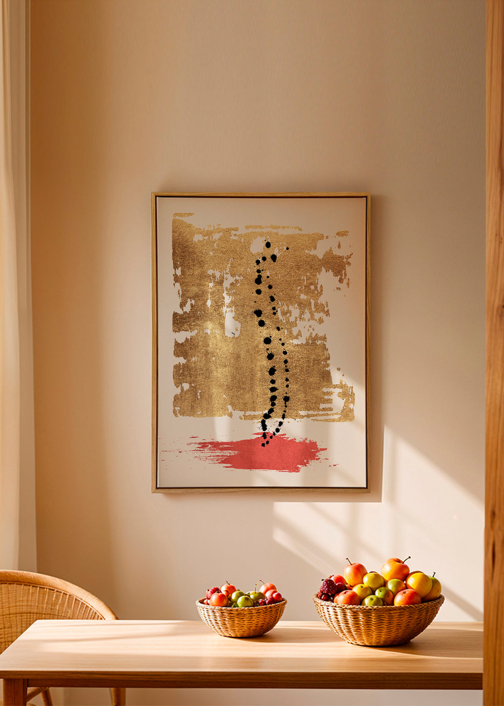 A design inspired by the collection of abstract wall art and prints, created by KUBISTIKA, with touches of red, and to hang in vertical position. Abstract art awakens our minds and makes us reflect on the meaning of the pieces. Fill your walls with prints.