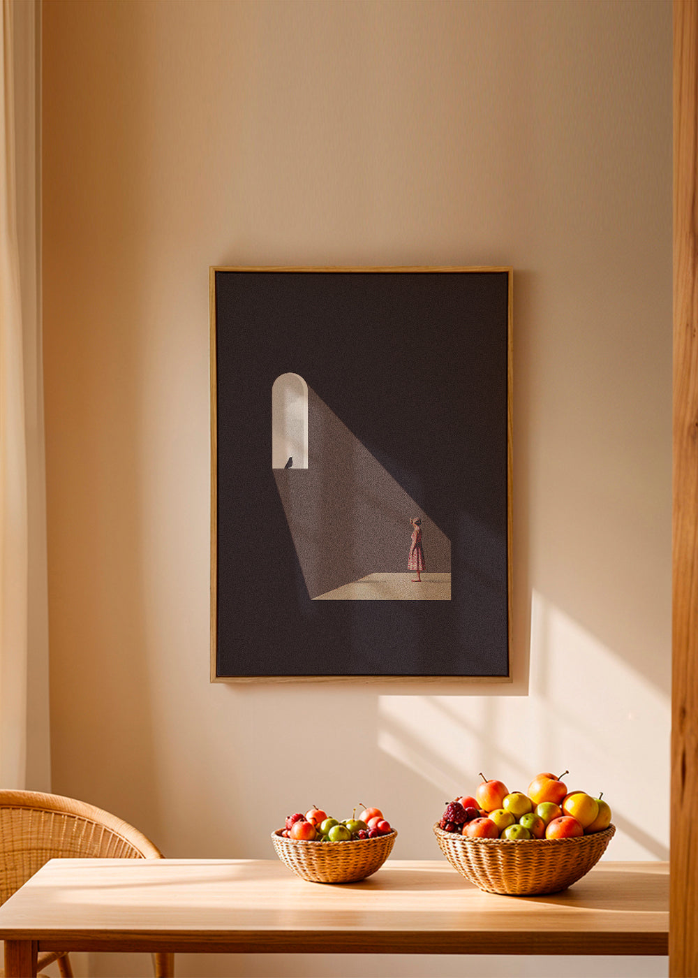 Print: premium 250 gsm art paper, ideal for framing or hanging with poster holders.
