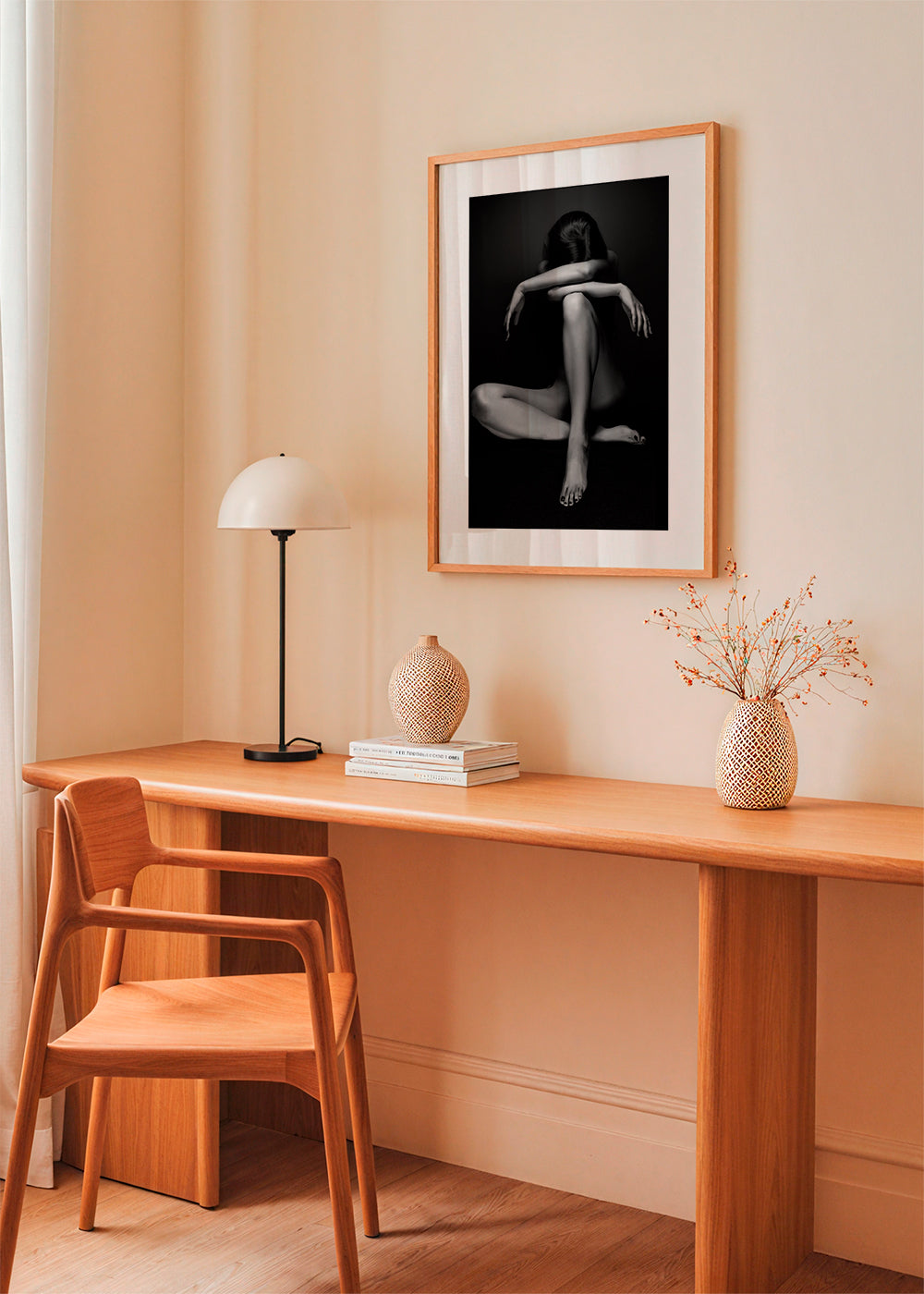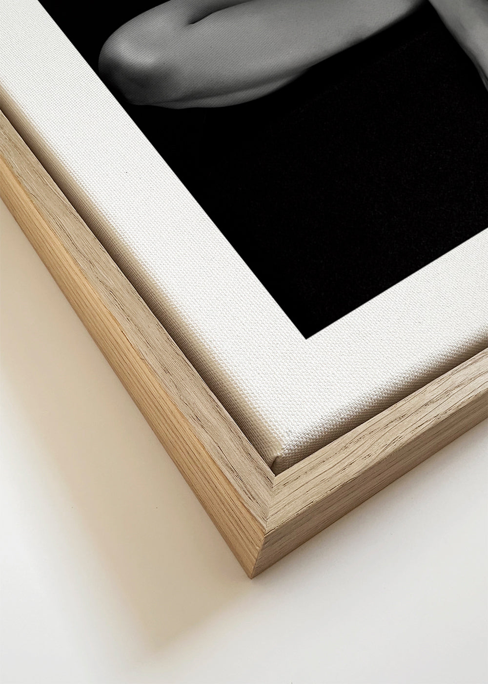 We work with solid wood and aluminum frames. All framed artworks are shipped already assembled and ready to hang. The front protection is high-clarity acrylic glass.