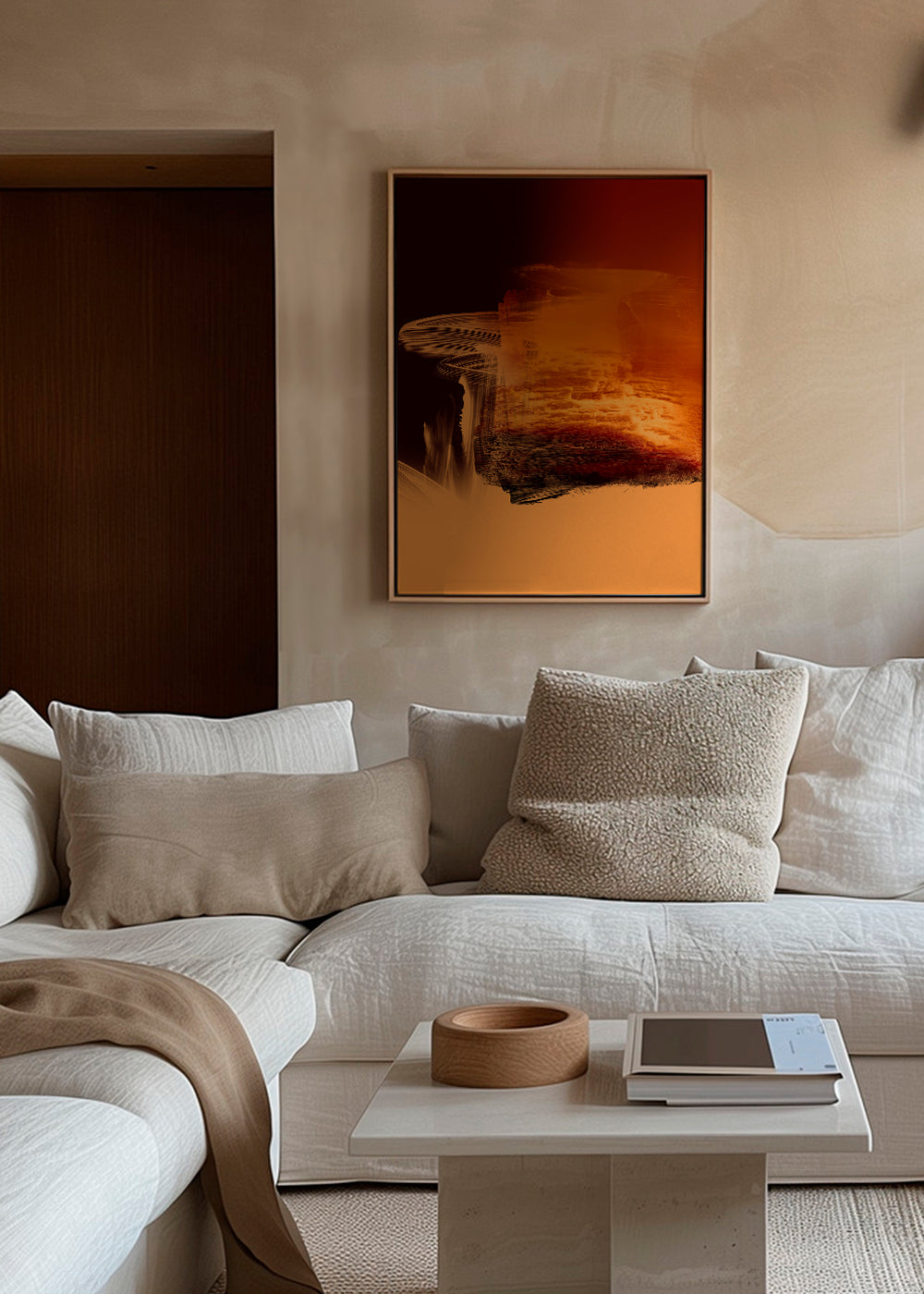 This print from our repertoire of abstract wall art and prints, from the Michael Hunter collection, with touches of red, and vertical layout. This design is perfect for decorating contemporary spaces. Combine it with other abstract pieces for cutting-edge decoration. A modern touch for your home.