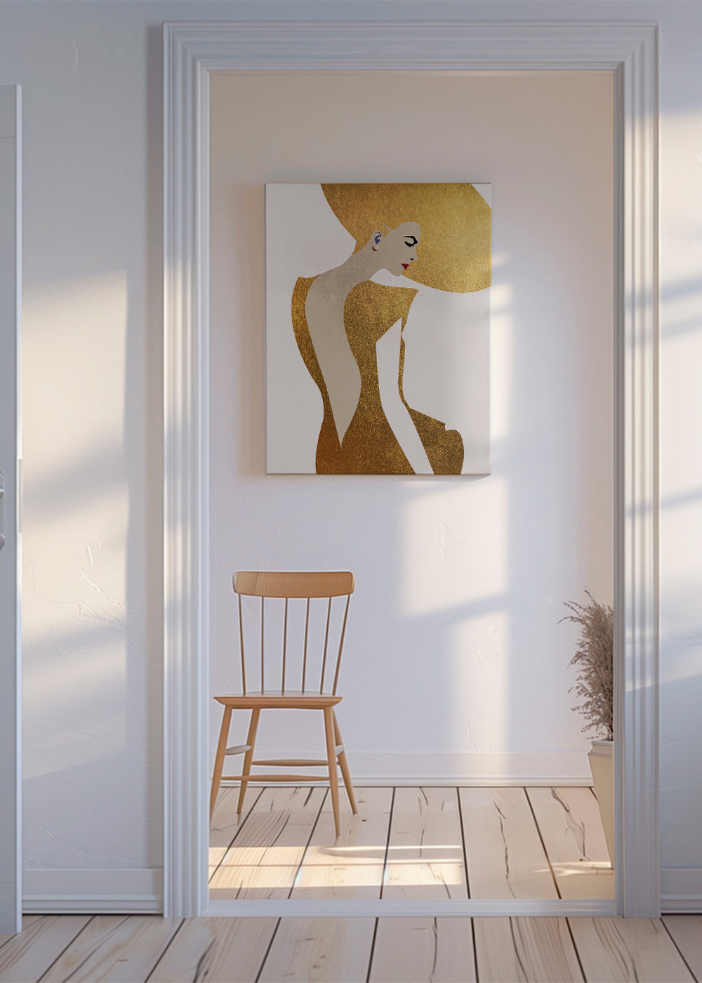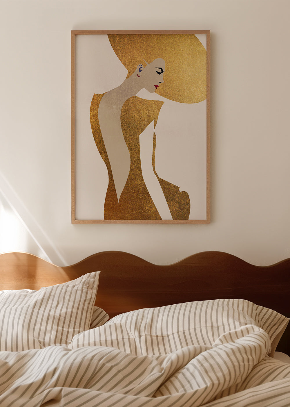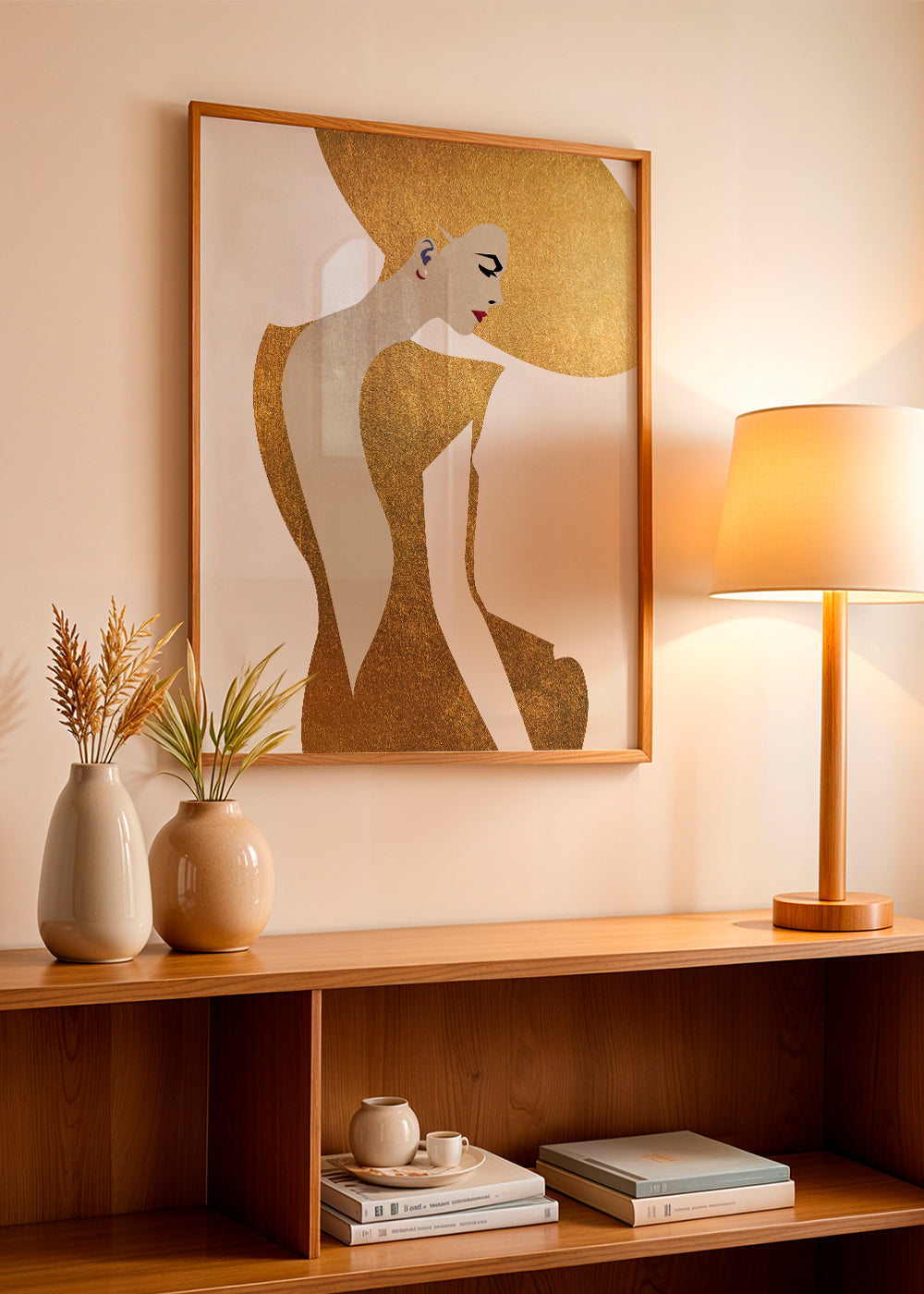 A print in the style of our girls wall art, by the artist Kubistika, in tones of gold, and with vertical layout. Illustrated posters are perfect for pairing with minimalist and abstract art. Create the perfect wall decoration.