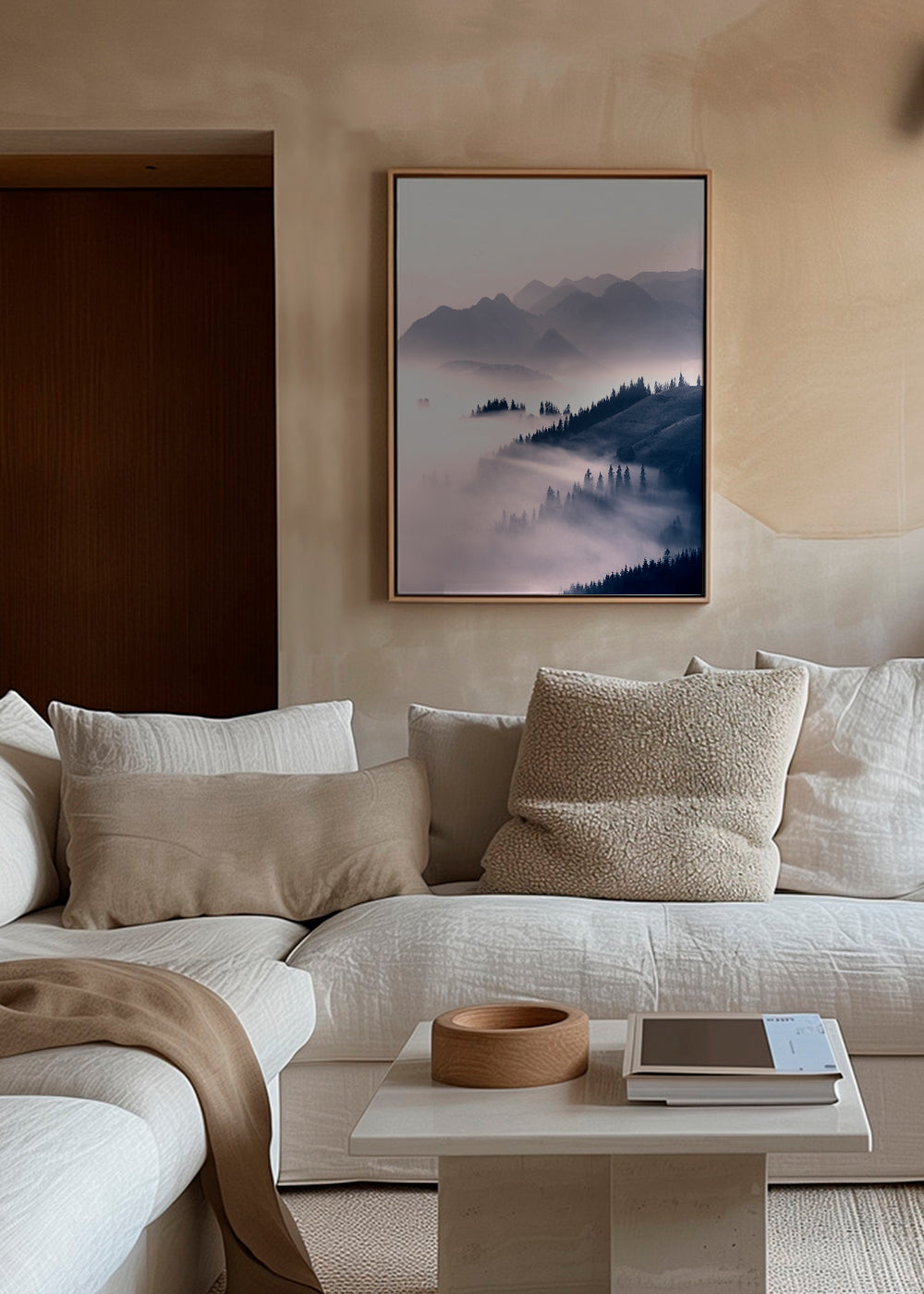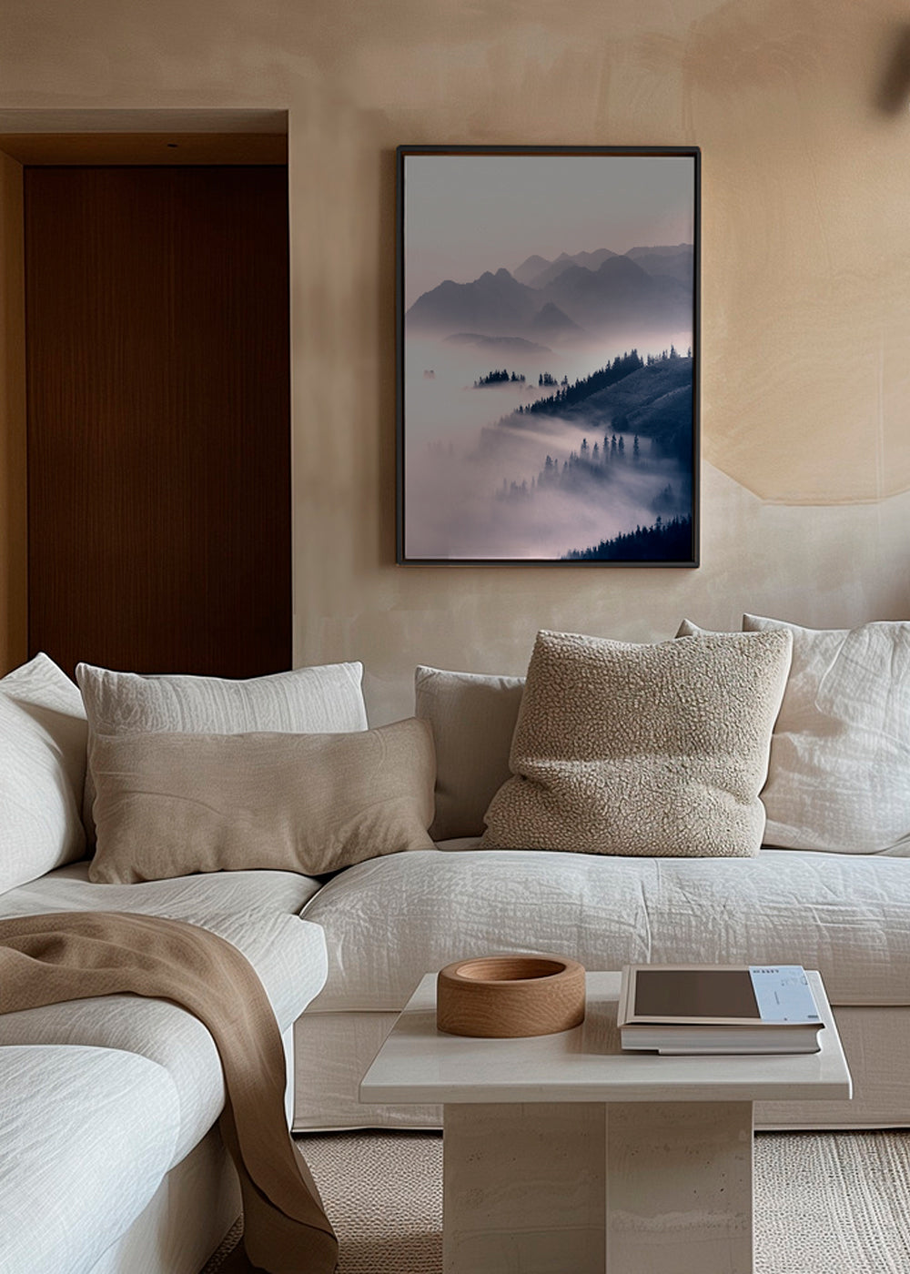 A print from our selection of mountains wall art, from the mind of Kathrin Pienaar, with pink tones, and in vertical position. Landscape prints are spectacular; pair them with texts and phrases to create cool wall compositions. Create spots full of art.