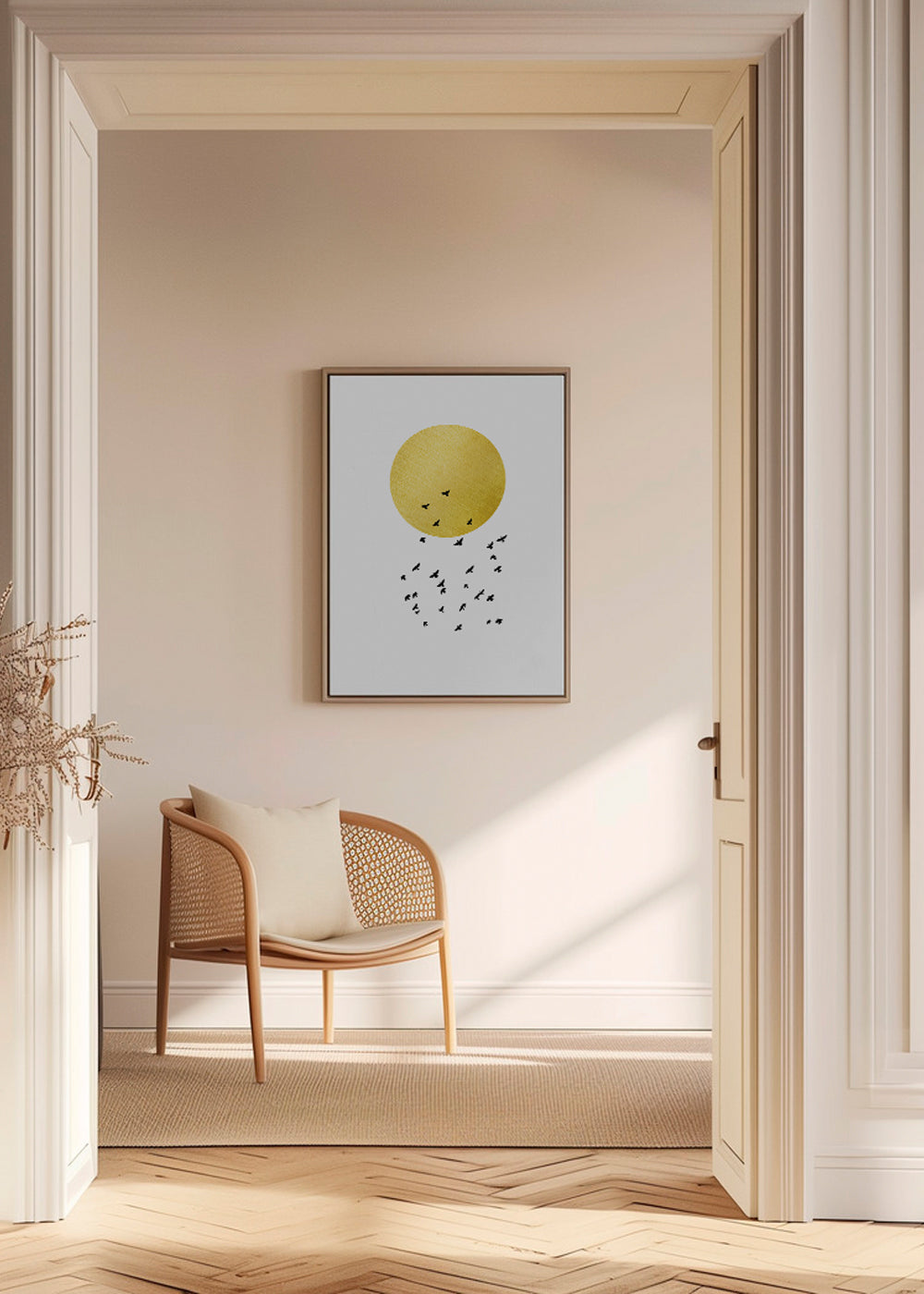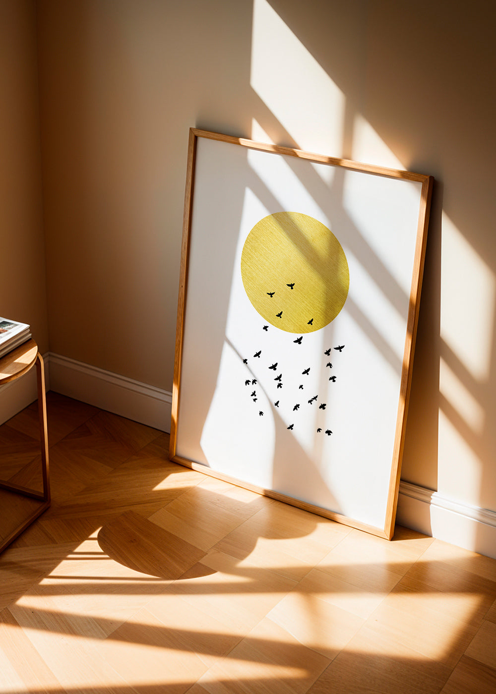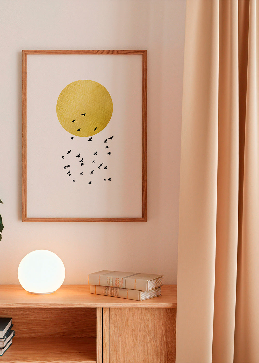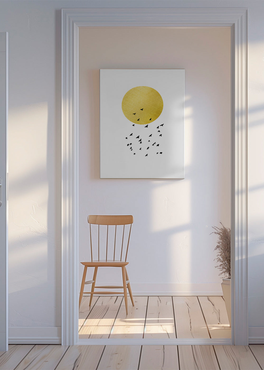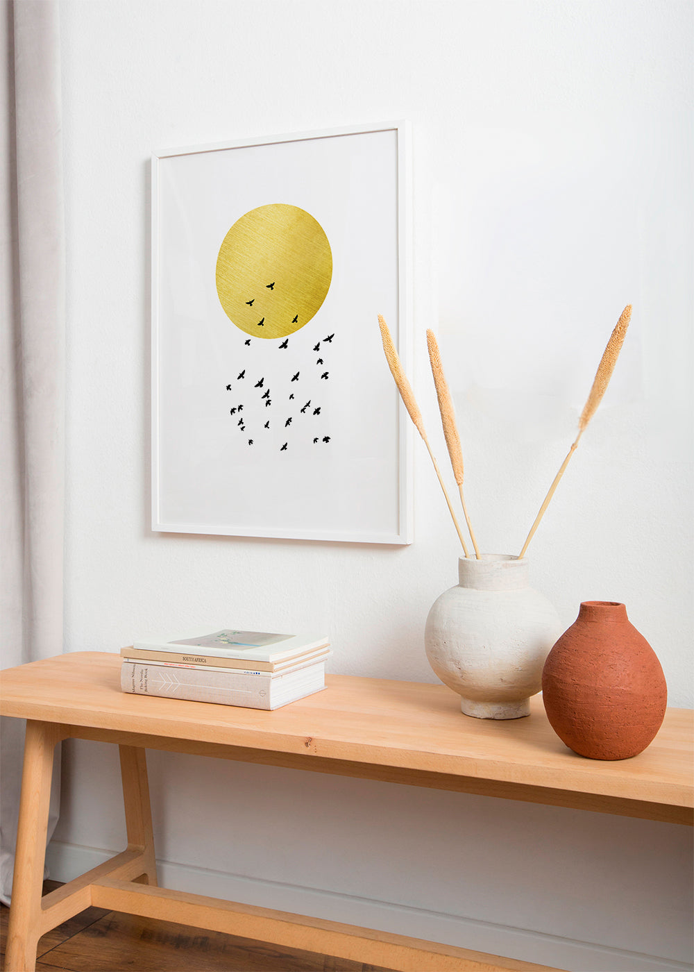 A poster from the birds wall art category, an original by Bondecco, in tones of gold, and in vertical position. The tranquillity and freedom of landscape prints is one of a kind. The difference is in the details.