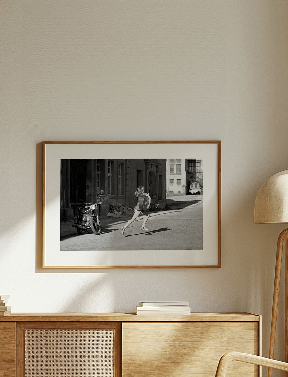 A design from the girls wall art collection, in black and white shades, and to hang in horizontal position. A retro style that is perfect for a vintage look. Elegant walls for chic homes. The white strip around the piece enhances its expressiveness.