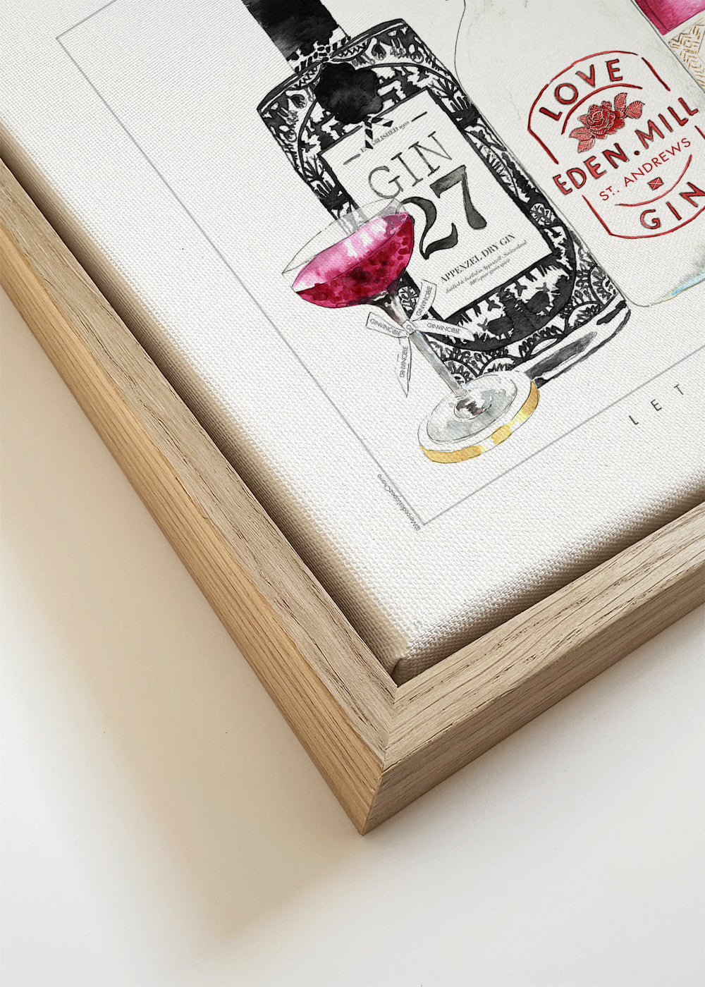 A poster in the style of our gin wall art, by Mercedes Lopez Charro, with touches of multicolor, and with horizontal layout. A beautiful landscape perfect for pairing with other nature prints. Create a one-of-a-kind spot.