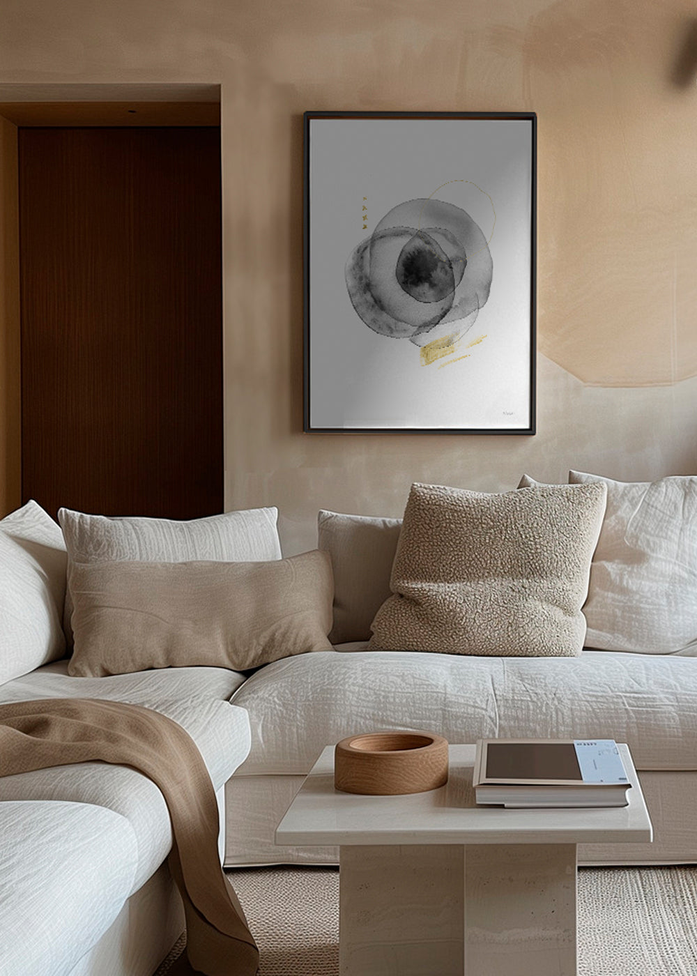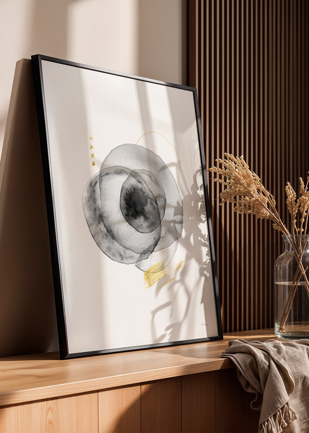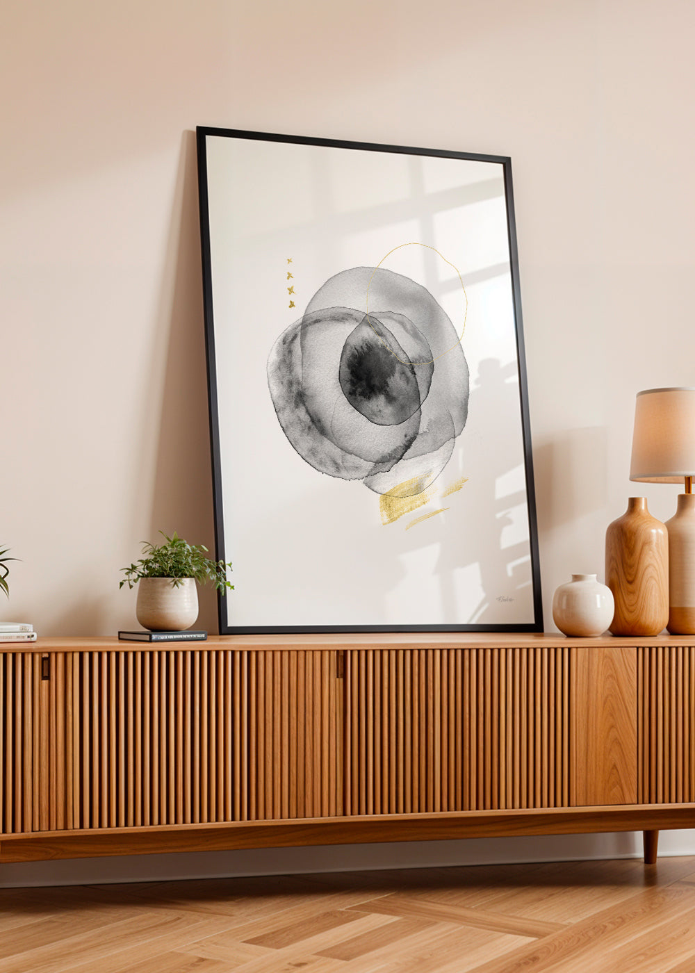 Beautiful poster from the geometric wall art and prints series, made by Fabiana Silveira, with shades of grey, and with vertical layout. Geometric art is an elegant style to decorate the walls of your home with. Create your favourite spot.