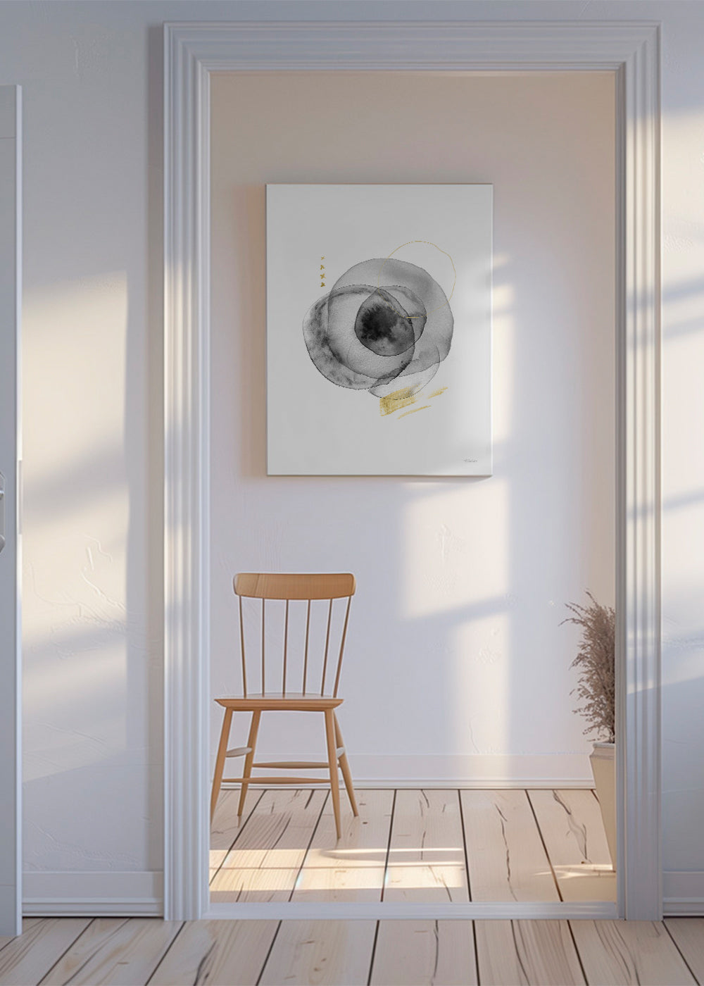 Each canvas is hand-stretched over a wooden frame. The depth is 3 cm for unframed canvases and 4 cm for framed canvases.