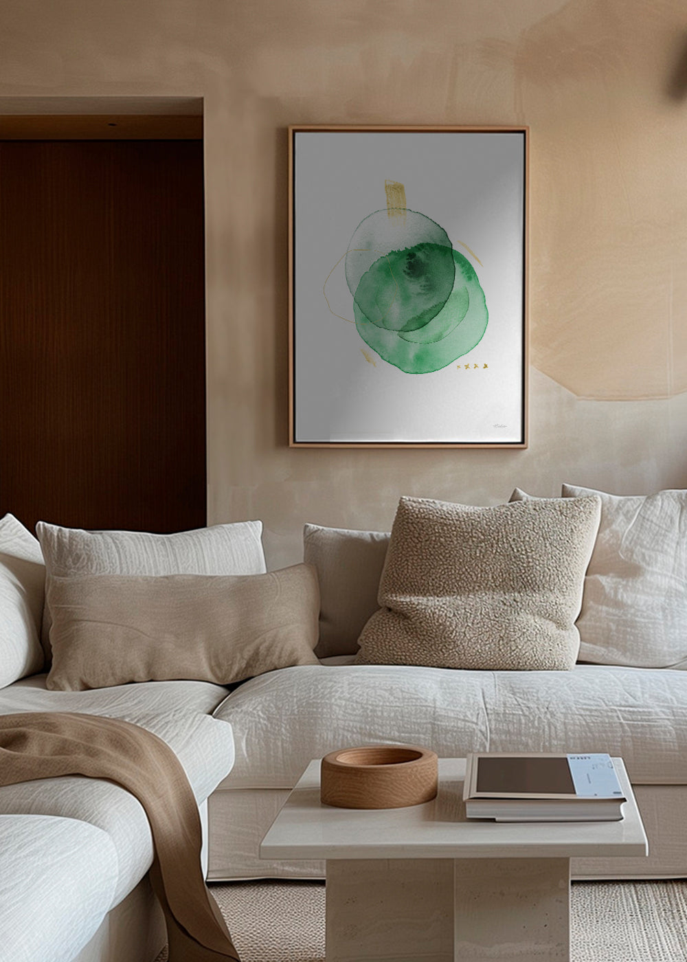 A poster from our geometric wall art and prints collection, made by Fabiana Silveira, with green, and with vertical layout. This piece with abstract shapes is perfect for pairing with other abstract art and geometric prints. A piece that will be a plus for any room.