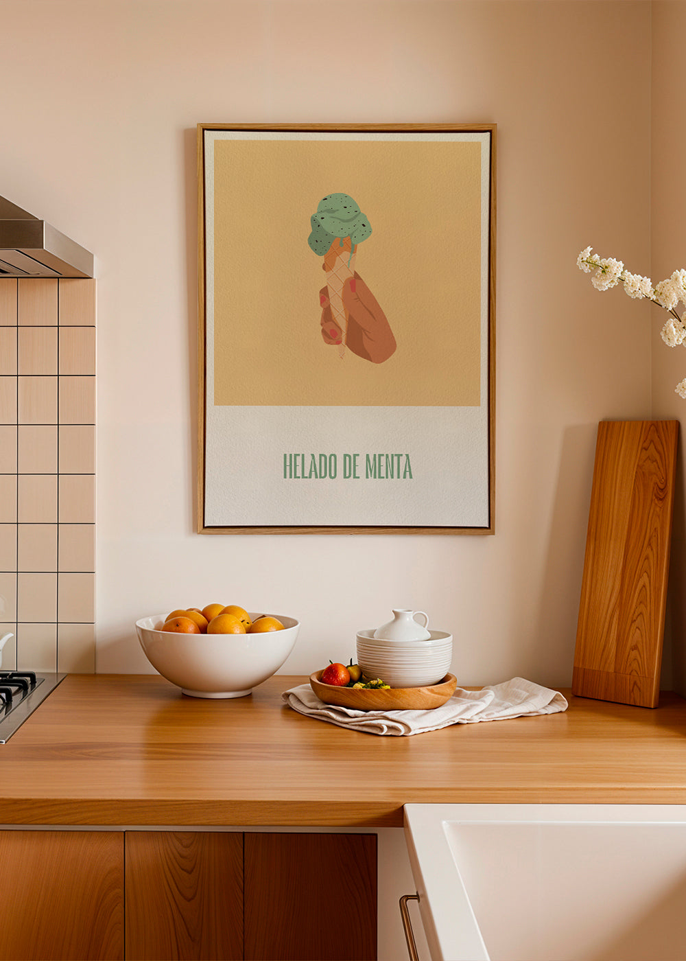 Beautiful poster from our food posters series, by creative artist Nerea Ramírez, with yellow pigments, and vertical layout. Decorating your kitchen with prints and posters is trendy, and this piece is the perfect way to do it. A piece that will be a plus for any room.