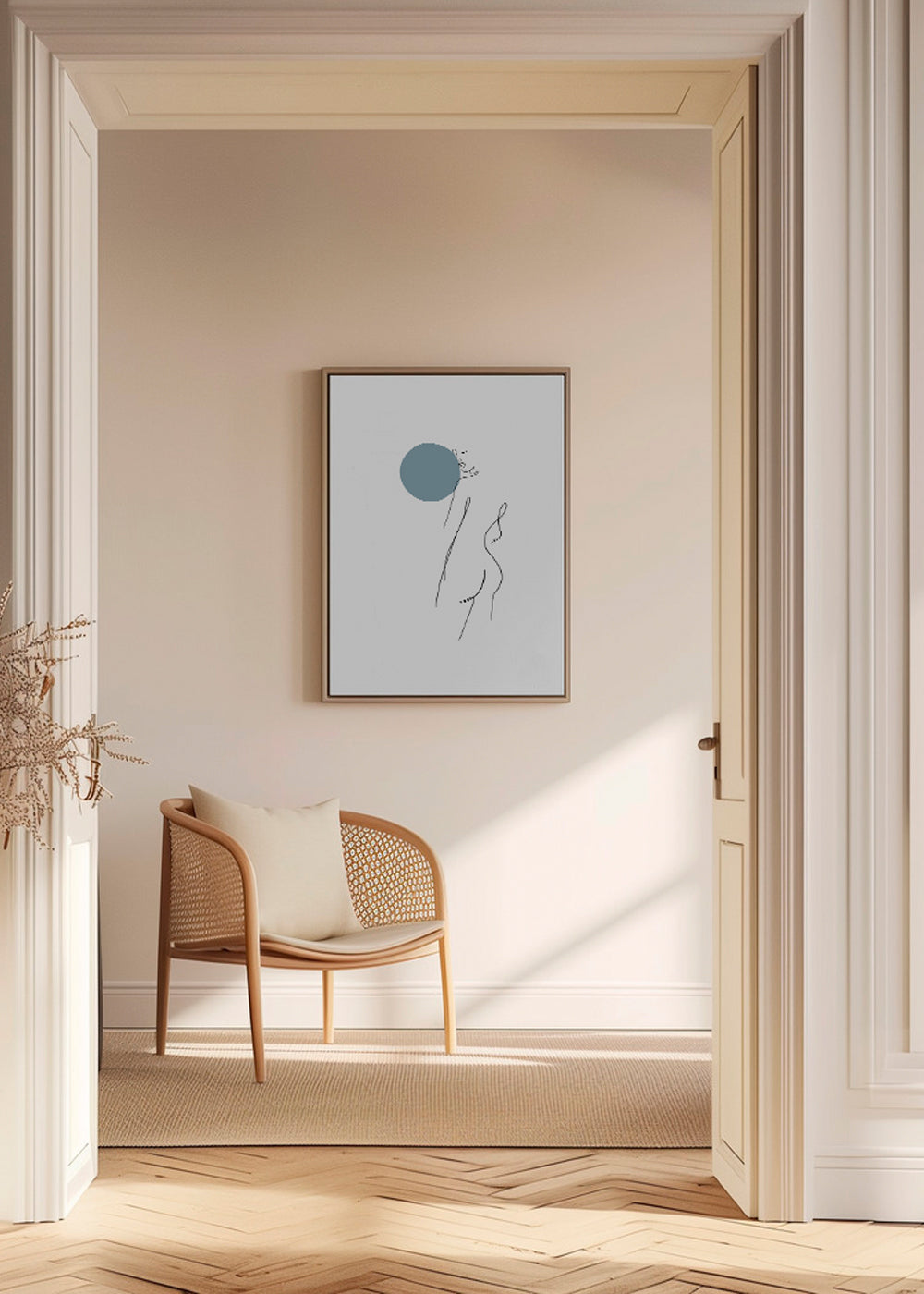 This piece from the line art prints series, from the collection of the artist Ninhol, with grey, and in vertical position. The drawing is simple and clean, so you can pair it with other illustrations for an artistic composition. It's always a good time to freshen up your home.