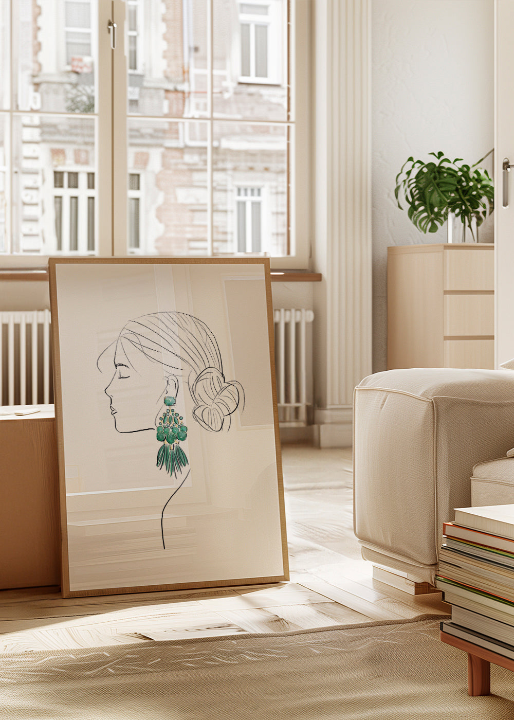 This piece from our repertoire of fashion posters and wall art, by Kruth Design, with green pigments, and to hang in vertical position. Illustrated prints give your home decor a touch of originality. An empty wall is a sad wall; but with a few prints, we'll make it smile.