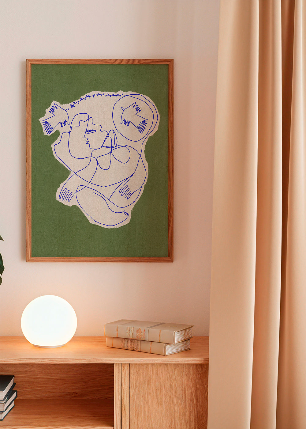Stroke with soul. Charming drawing A masterpiece by Shatha Dafai. Featuring greens hues designed in vertical format. illustrated prints give your home decor a touch of originality. Make your walls stand out