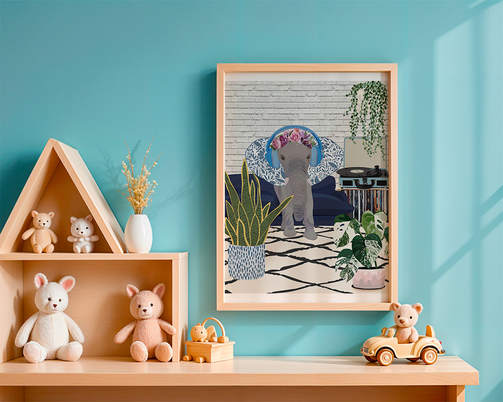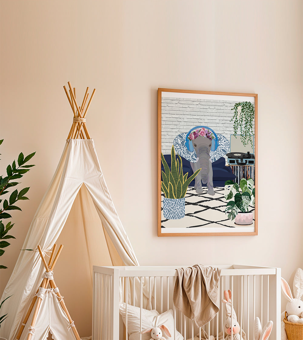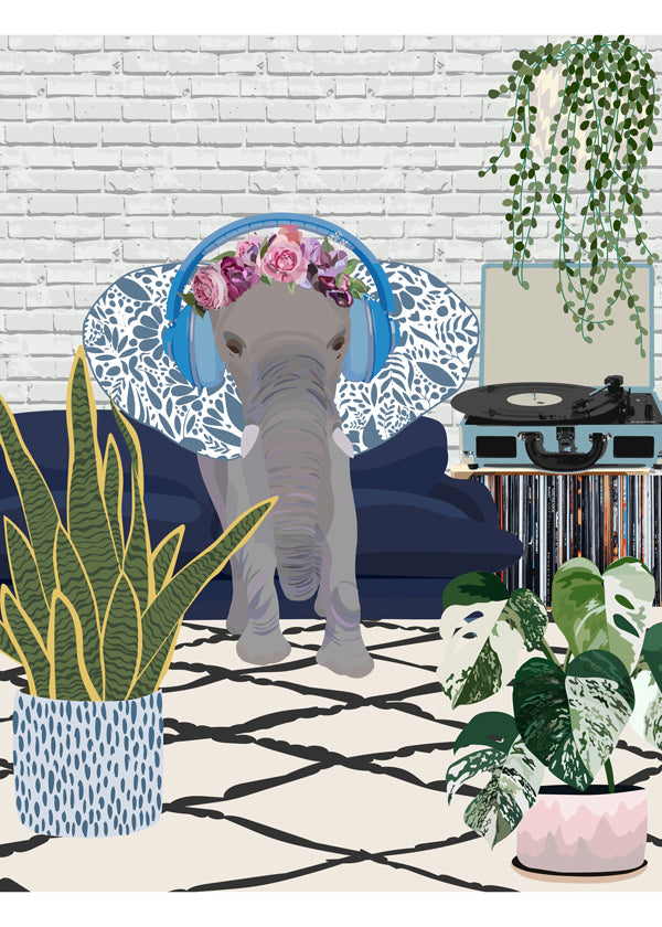 Kids poster Elephant music headphones