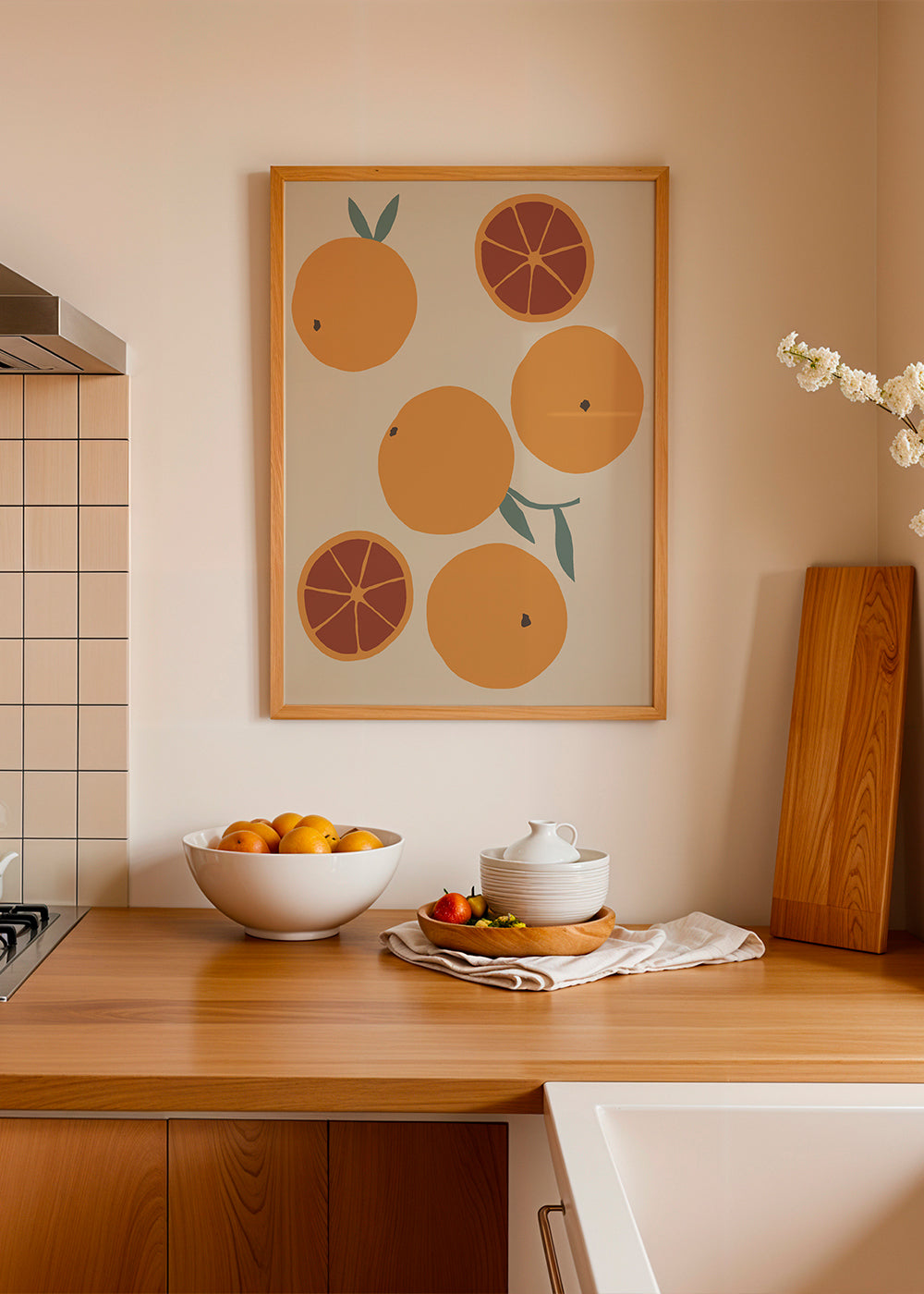 Beautiful design from the fruit posters collection, with tones of orange, and vertical layout. Decorating your kitchen with prints and posters is trendy, and this piece is the perfect way to do it. Bring the walls of your home to life.