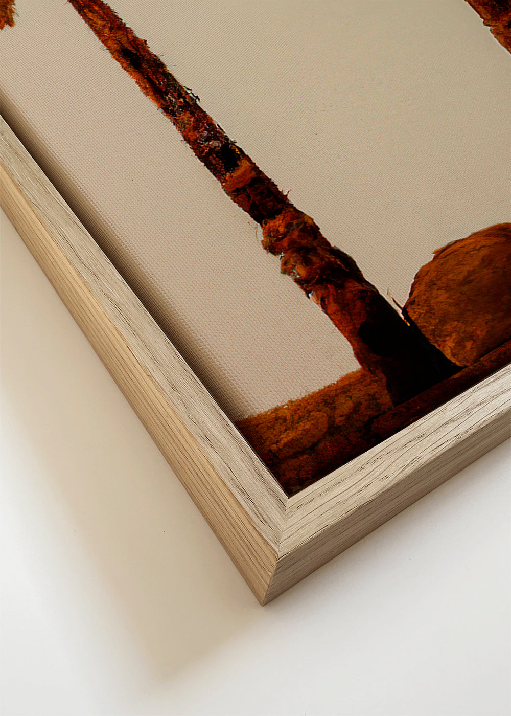 Each canvas is hand-stretched over a wooden frame. The depth is 3 cm for unframed canvases and 4 cm for framed canvases.