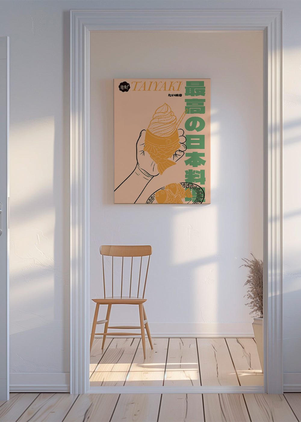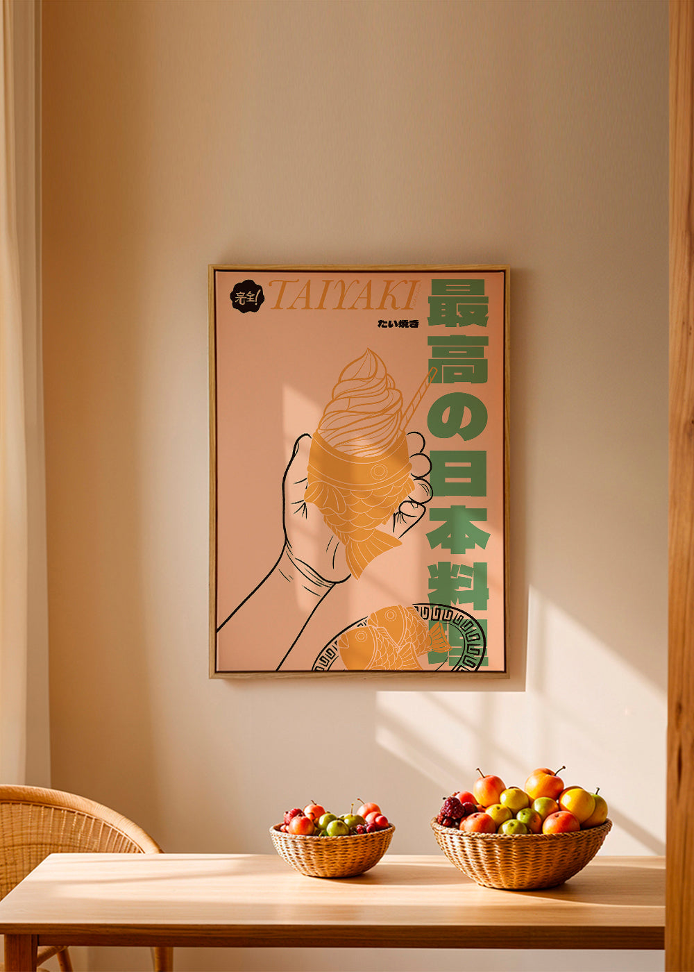 A print from our repertoire of japanese wall art, from the mind of Rafa Gomes, with pink pigments, and in vertical position. Vintage prints give a super chic touch to any space. Create spots full of art.