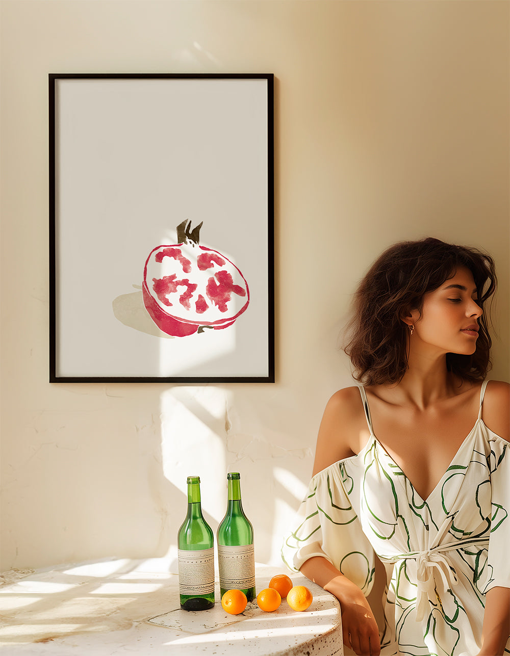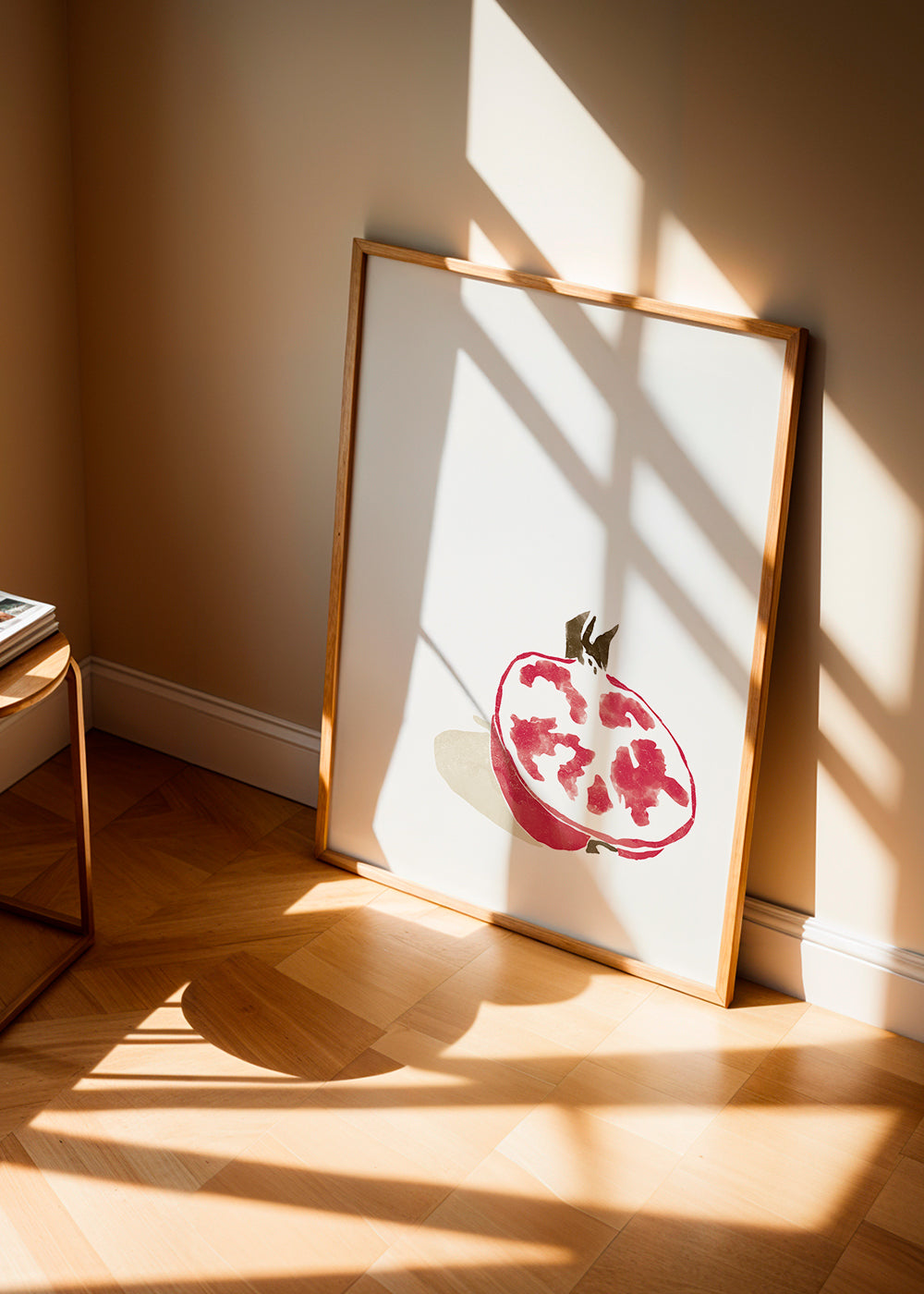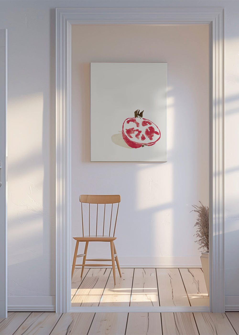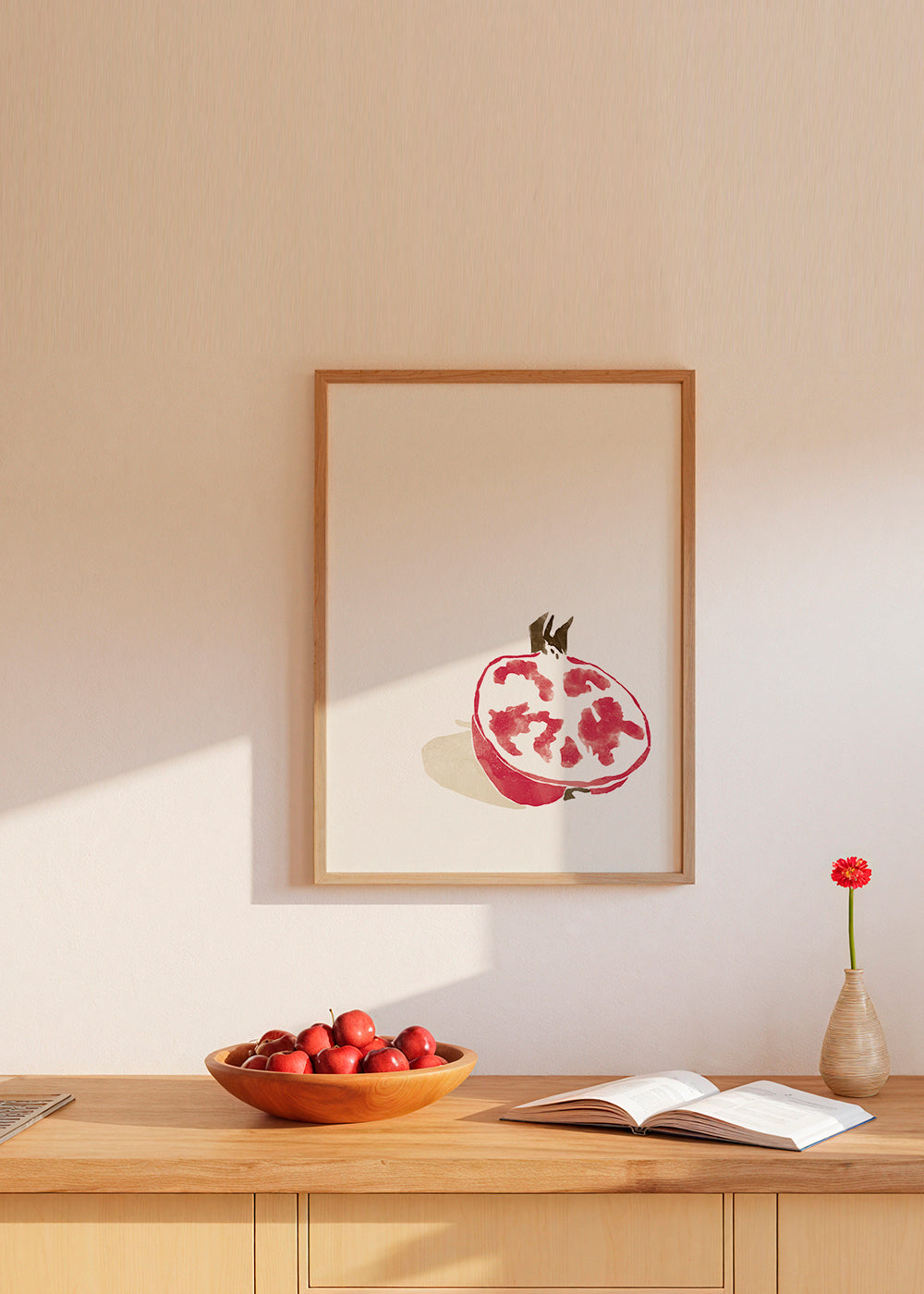 Beautiful piece from the fruit posters series, made by Yuyu Pont, with red pigments, and with vertical layout. The kitchen can be a cosy spot, too, if you pair this design with other kitchen prints for a super chic kitchen. Create the perfect wall decoration.