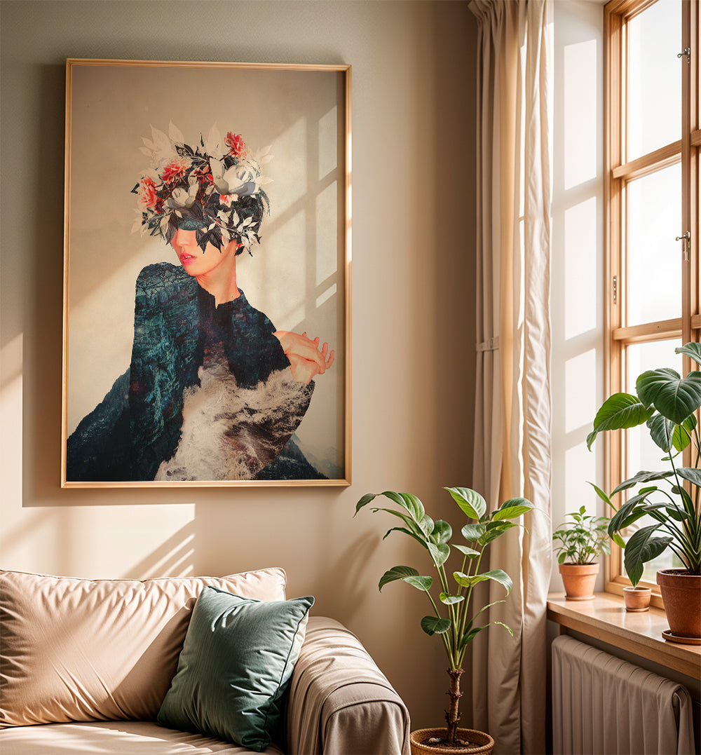 This piece from our repertoire of girls wall art, created by Frank Moth, with touches of blue, and facing vertically. Give your style a vintage touch by pairing this print with other retro-style posters. Fill your walls with prints.