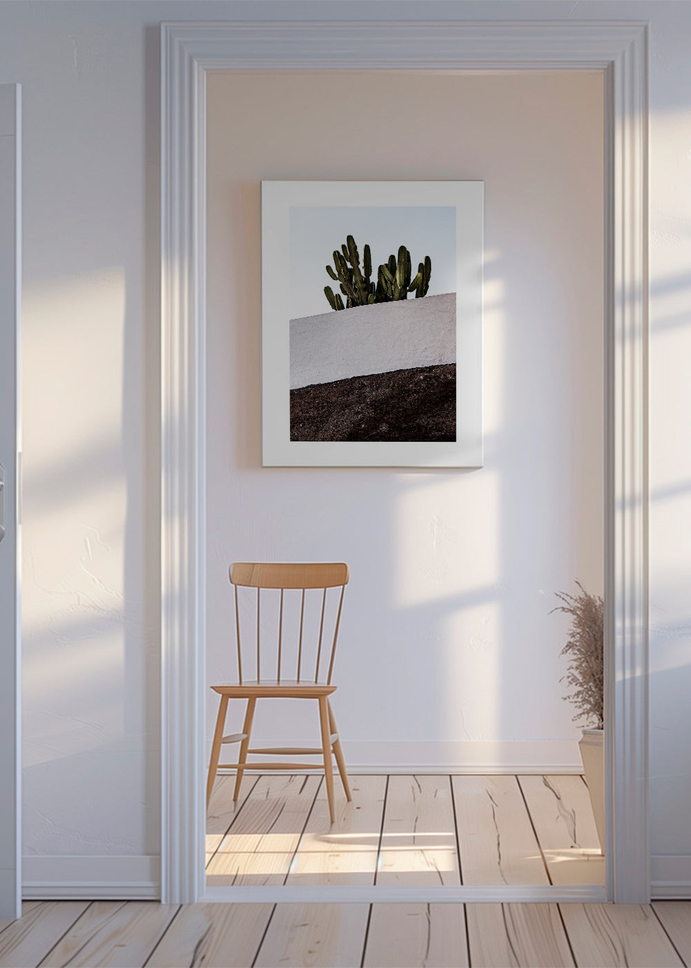 We work with solid wood and aluminum frames. All framed artworks are shipped already assembled and ready to hang. The front protection is high-clarity acrylic glass.