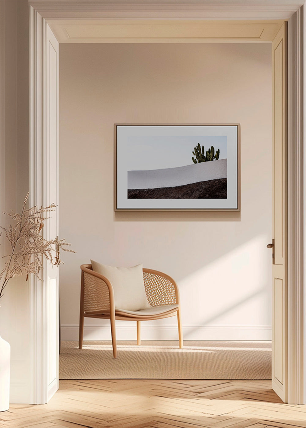 If you select the passepartout option, we will add the white matt board to the frame, and we will reduce the design of the work. For example, if you select a print size 20x28 in, with an oak colored frame and passepartout, we will reduce the design of the print to the previous size (16x20 in). In this way, it will adapt perfectly to the inside window of the passepartout.