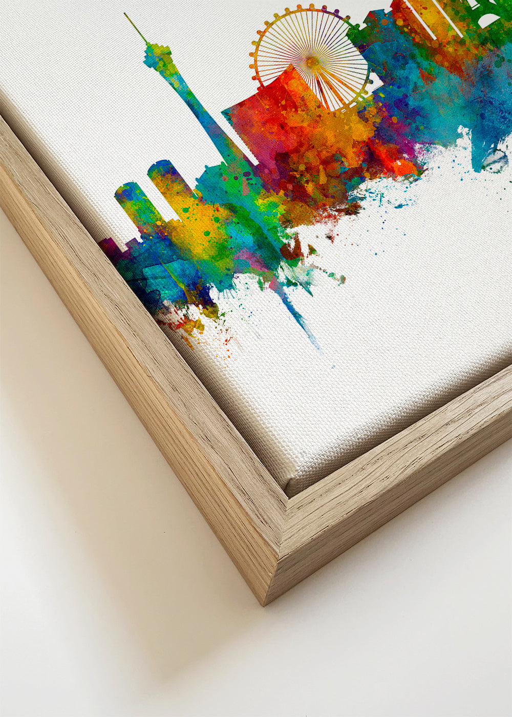 This print from our skylines canvas series, by the artist Michael Tompsett, with multicolor tones, and in horizontal position. If you love wandering around discovering new parts of the world, this print is for you. There are no ugly or beautiful walls, just empty or full ones.