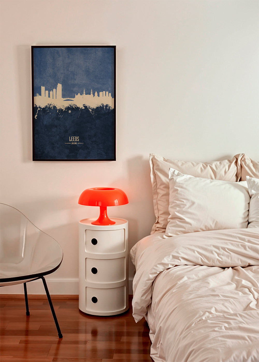 This print from our skylines canvas series, made by Michael Tompsett, in blue shades, and with vertical layout. Our map and city prints are perfect for those who love cities and architecture. Fresh and original.
