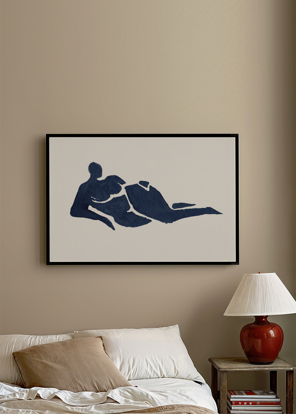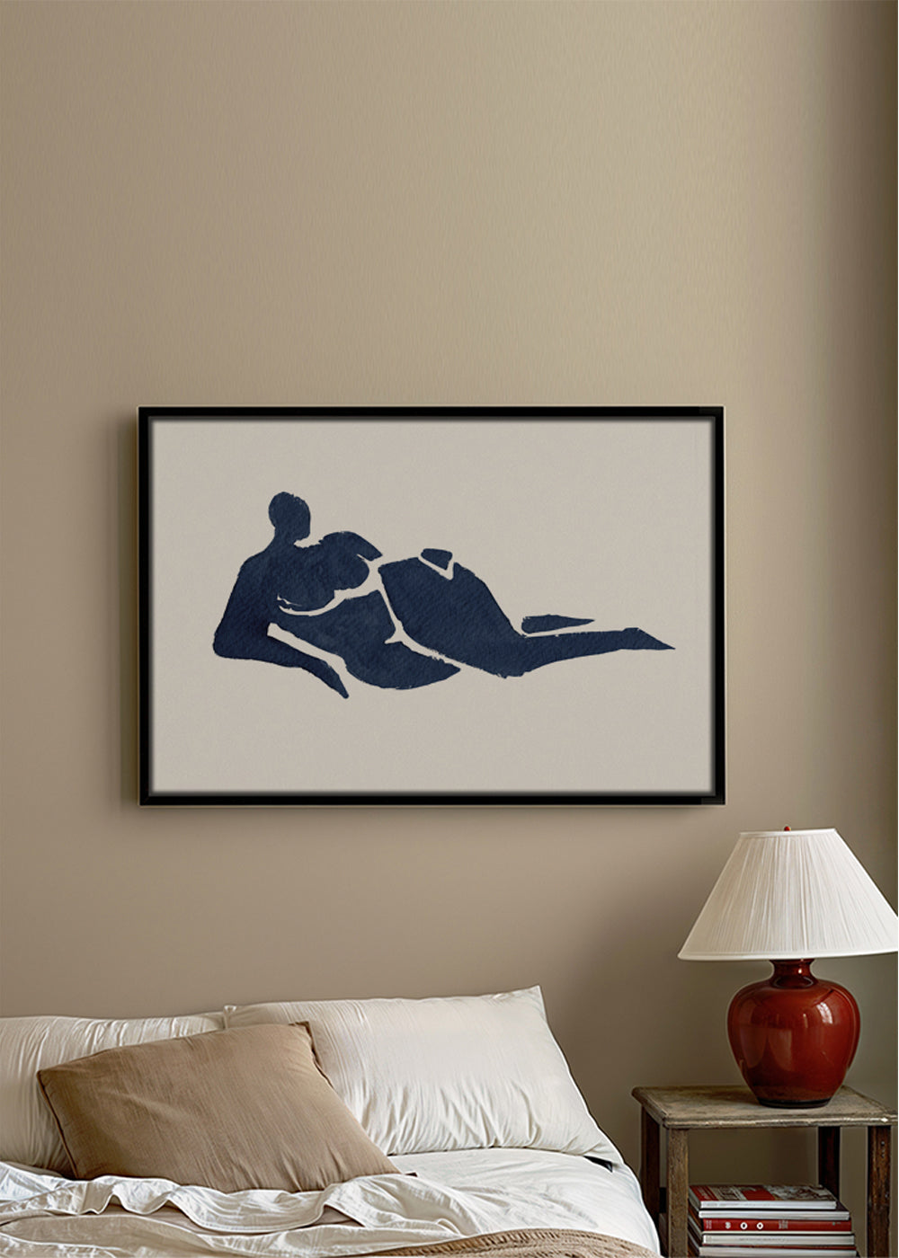 Beautiful print from our body shapes posters collection, from the Mike Koubou collection, with blue pigments, and in horizontal position. A beautiful landscape perfect for pairing with other nature prints. A modern touch for your home.