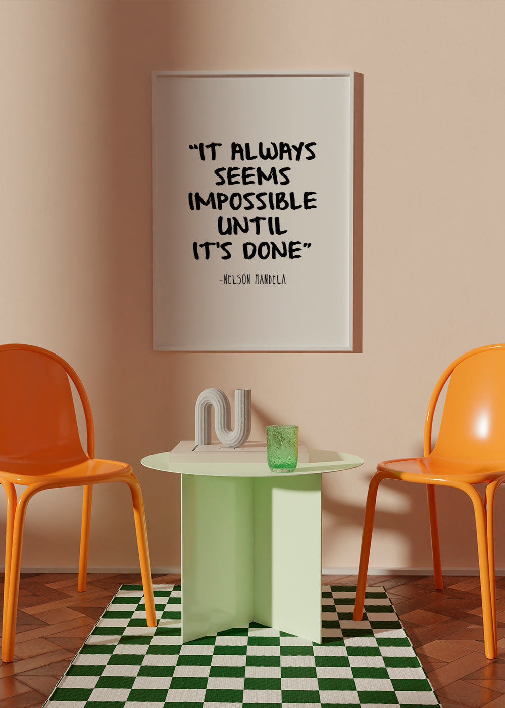 This poster from the quotes wall art series, made by Studio Mottos, with black and white pigments, and to hang in vertical position. This piece is perfect for decorating any space in your home. Combine it with other black and white prints to create a monochrome wall gallery. Fill your walls with art.