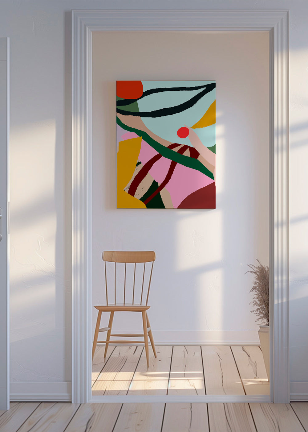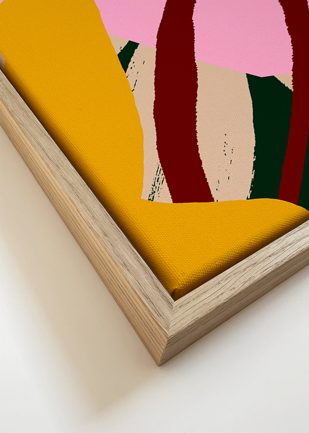 Each canvas is hand-stretched over a wooden frame. The depth is 3 cm for unframed canvases and 4 cm for framed canvases.