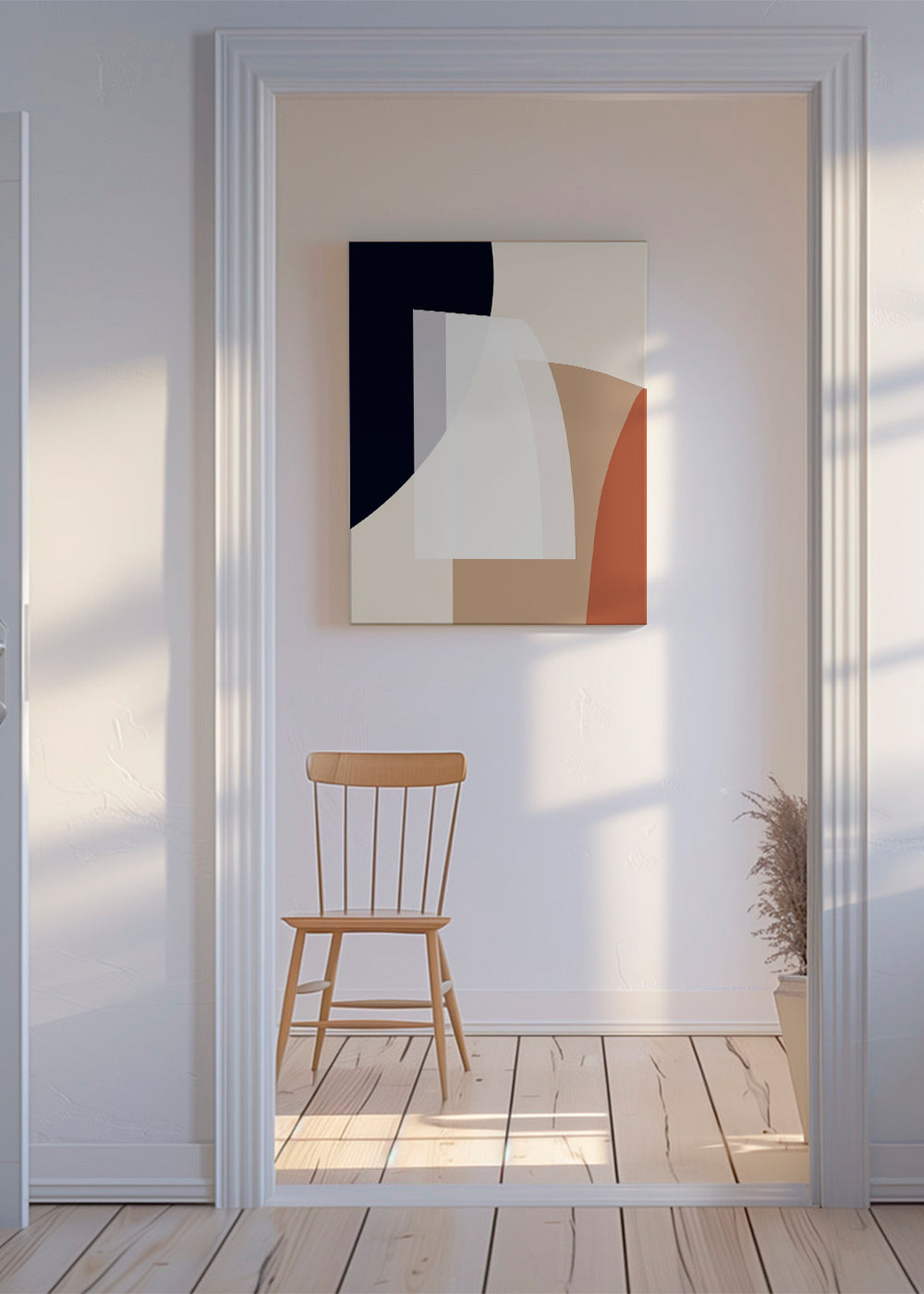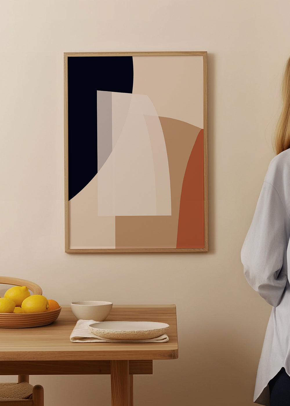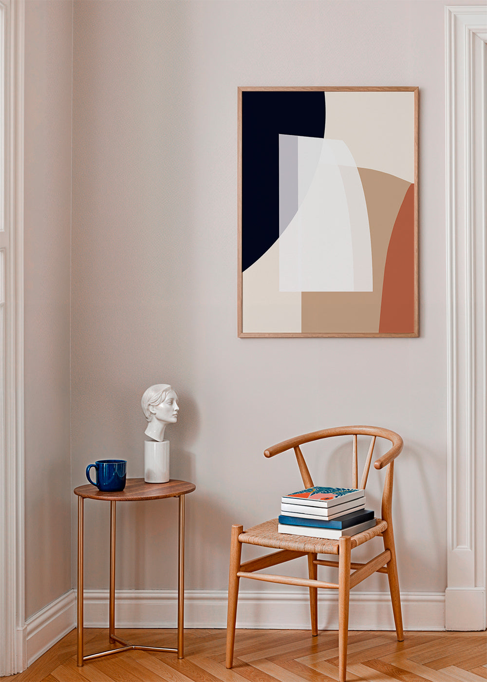 This poster from our geometric wall art and prints category, from the Anna Mainz collection, with blue tones, and with vertical layout. The abstract, geometric shapes help create a casual, creative setting. A new look on your walls can bring a breath of fresh air to all your decor.
