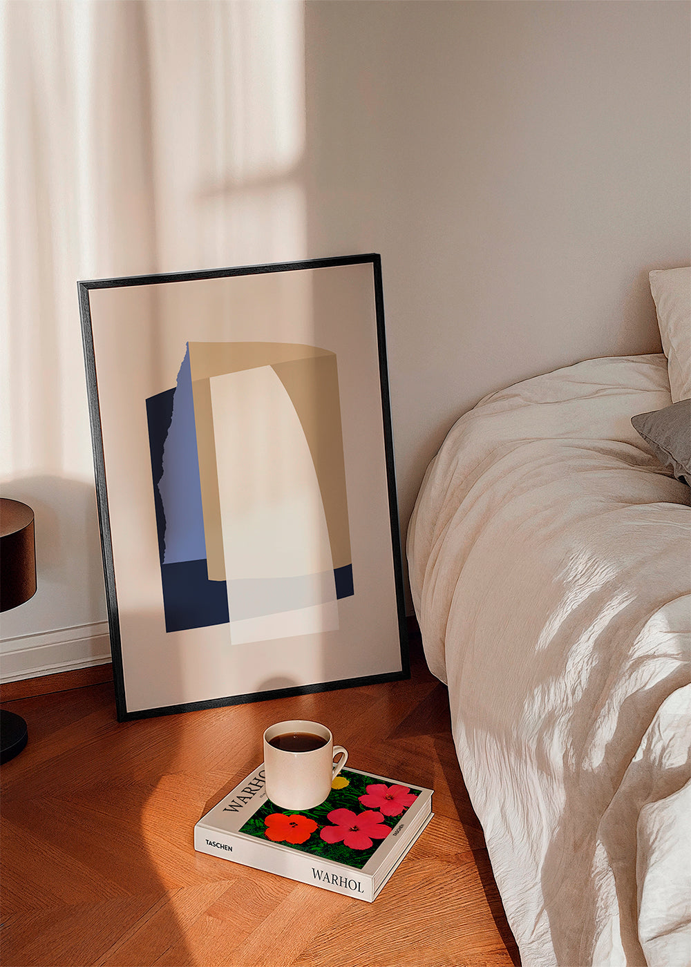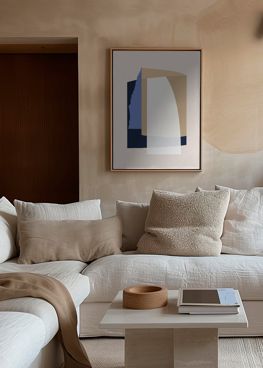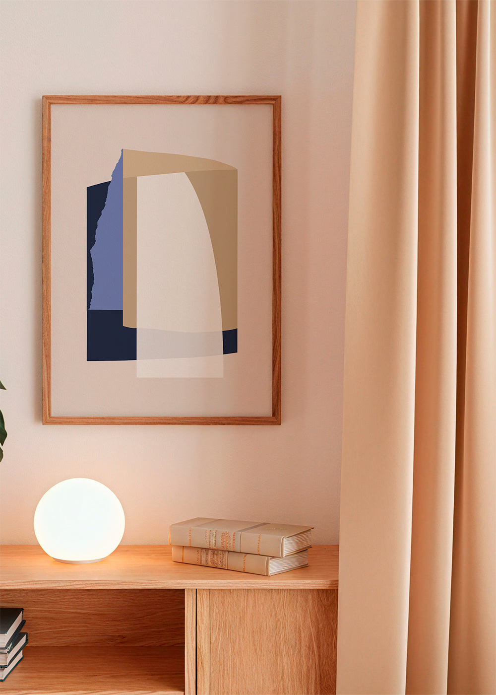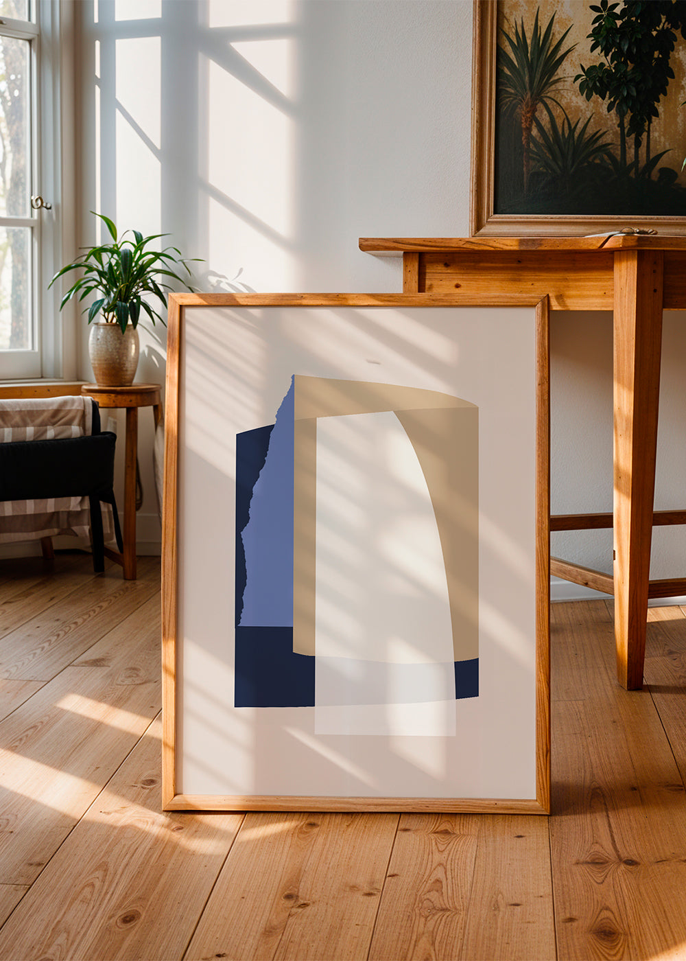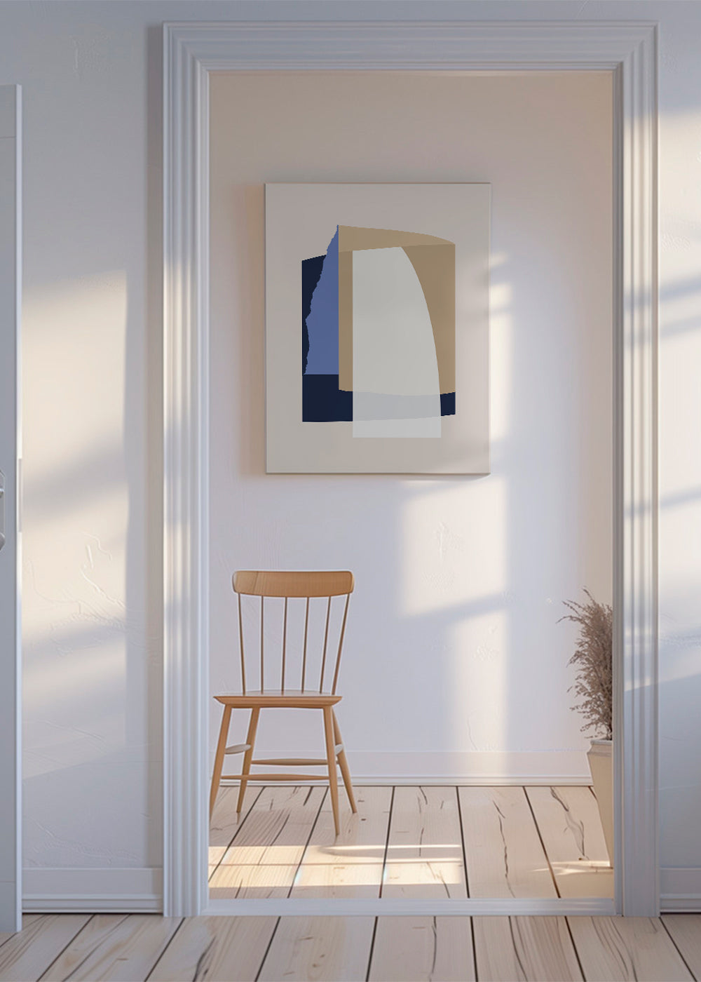 Beautiful print from our geometric wall art and prints collection, from the Anna Mainz collection, in tones of blue, and vertical layout. Geometric art is an elegant style to decorate the walls of your home with. Create your favourite spot.