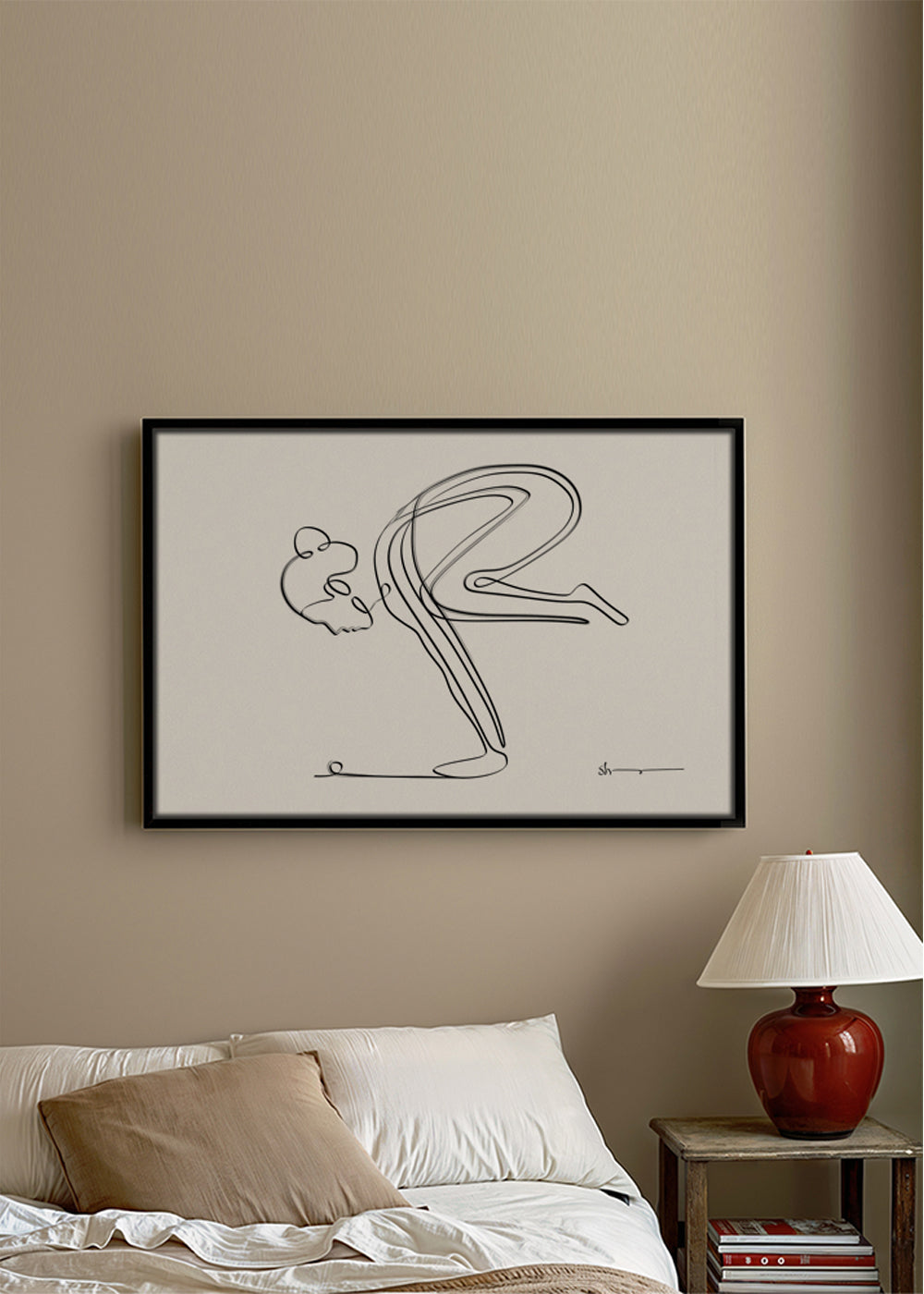 Beautiful piece from our line art prints series, created by Yoga in Art, with tones of black and white, and facing horizontally. A perfect piece for spaces bursting with art and creativity. Our drawings are perfect for decorating empty or boring spaces. Fresh and original.