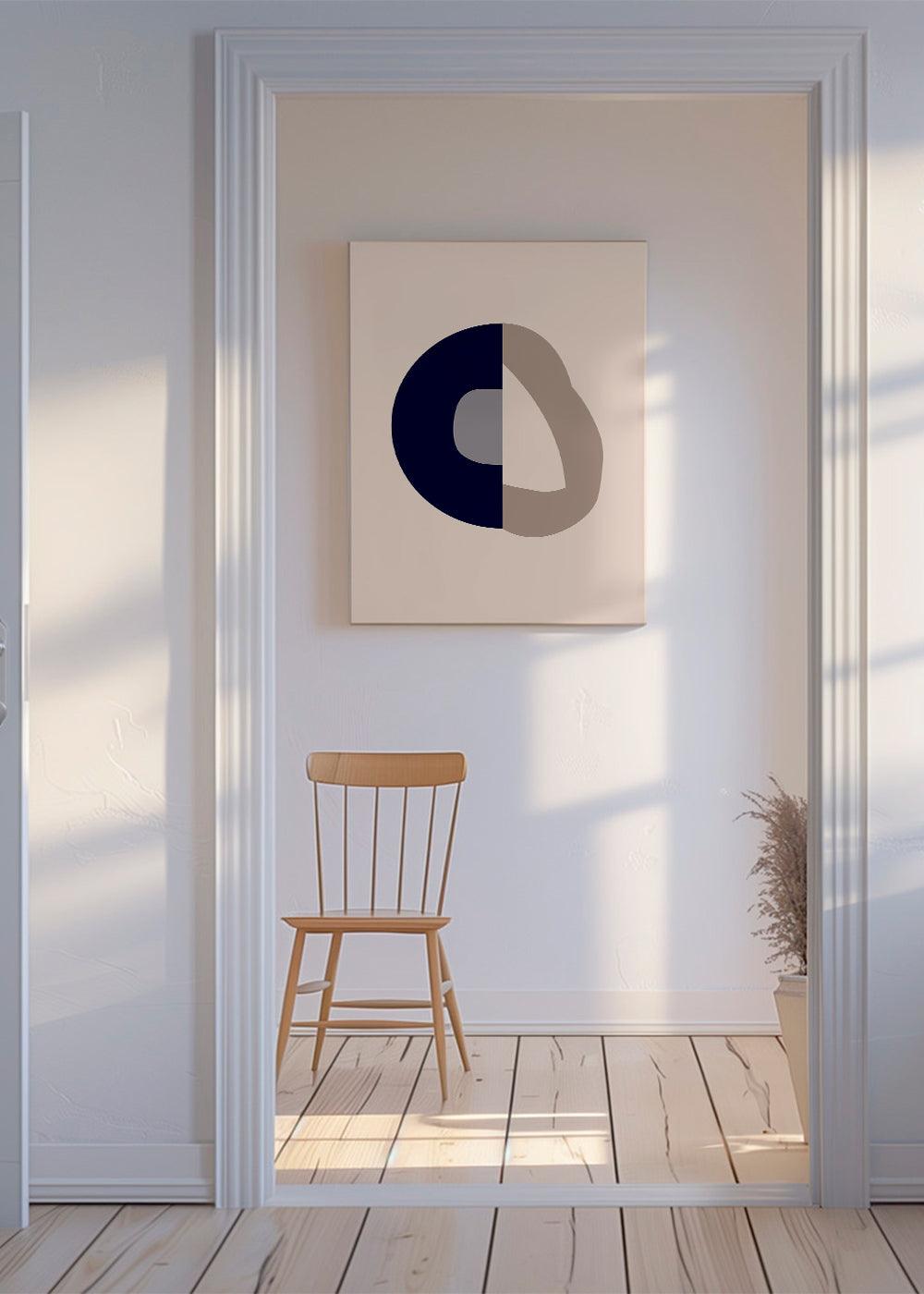 A poster from the geometric wall art and prints collection, created by Anna Mainz, in blue shades, and with vertical layout. Geometric prints are a great option for decorating modern, cutting-edge spaces. Choose the size that best fits your decor.